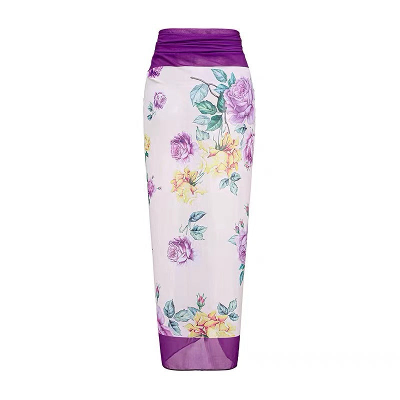 One Piece Swimsuit Women Skinny Slimming Retro Tied Swimsuit Suit Chiffon