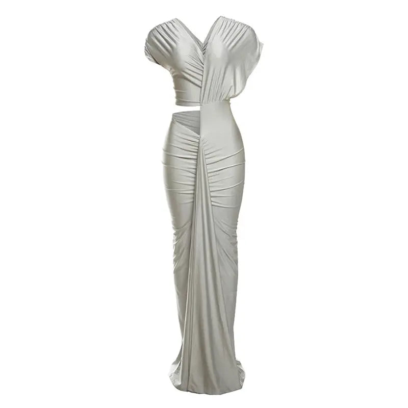 Winter Sexy Slim Fit Cropped Split Dress Solid Color Skinny Sheath Dress