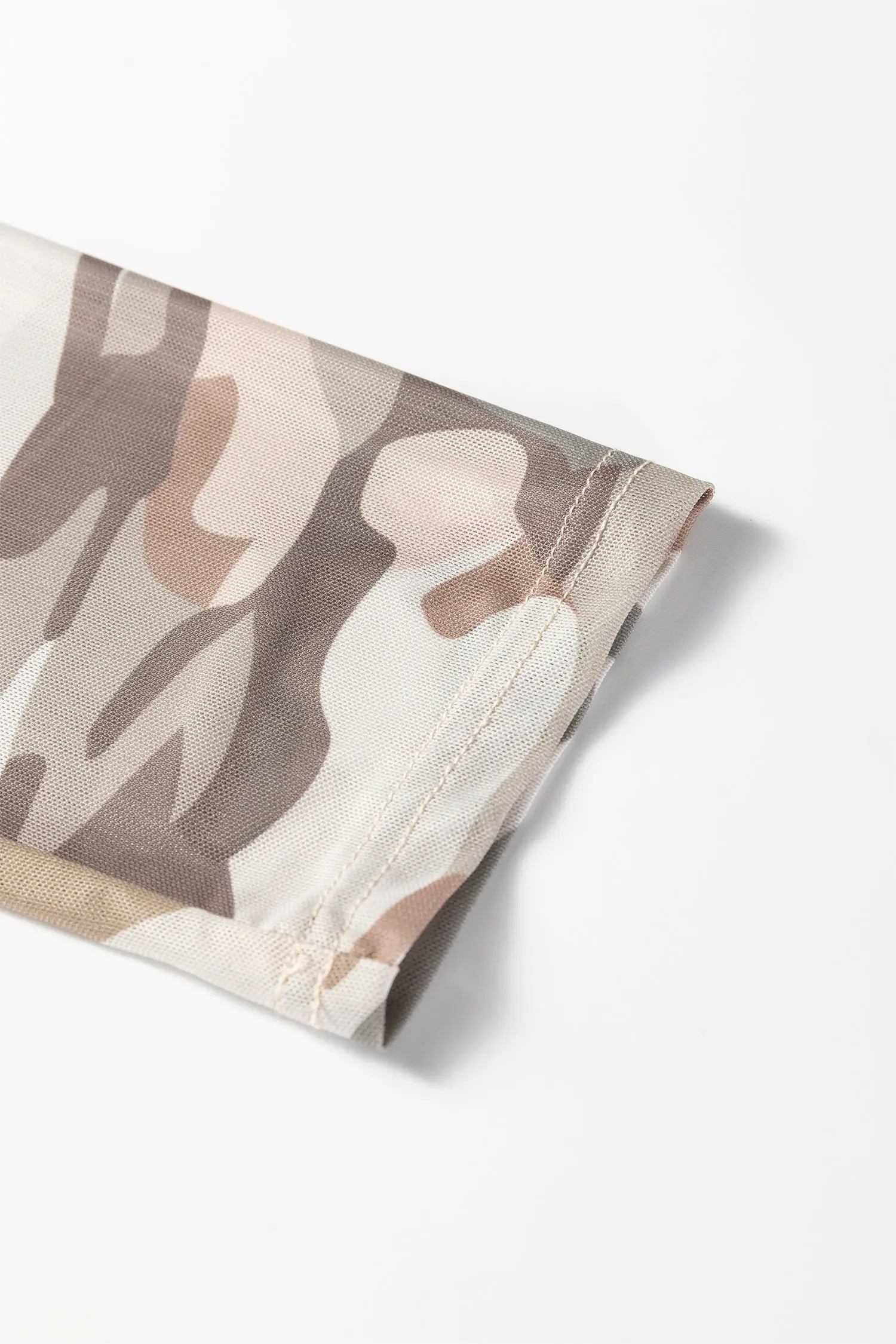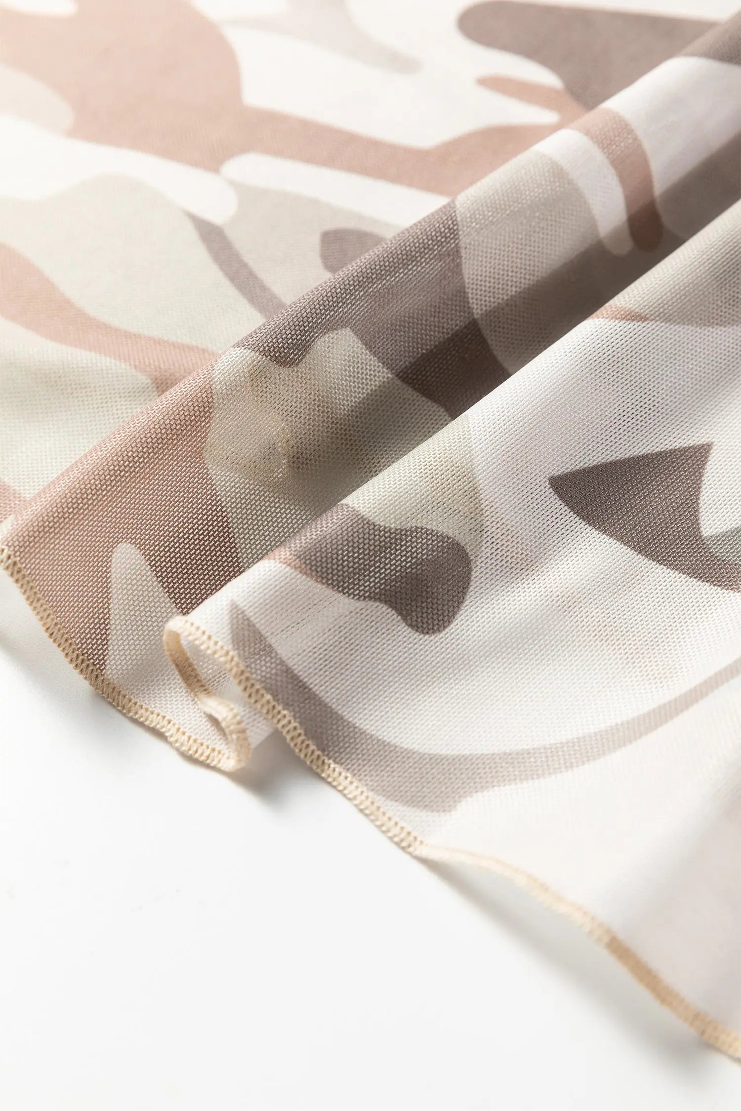Dear-Lover Green Camo Mesh Top Women's Western Style Long Sleeve Sheer Shirt