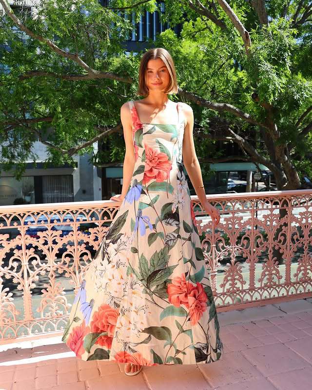 Spring Summer Maxi Dress Same Printed Square Collar Slimming Large Swing Length Dress