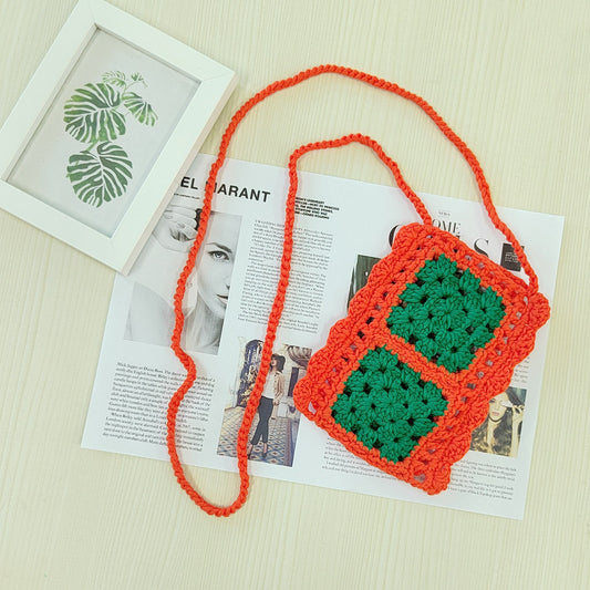 Handmade Woven Women Bag Net Red Ethnic Mobile Phone Bag Color Contrast Patchwork Single-Piece Crossbody Bag