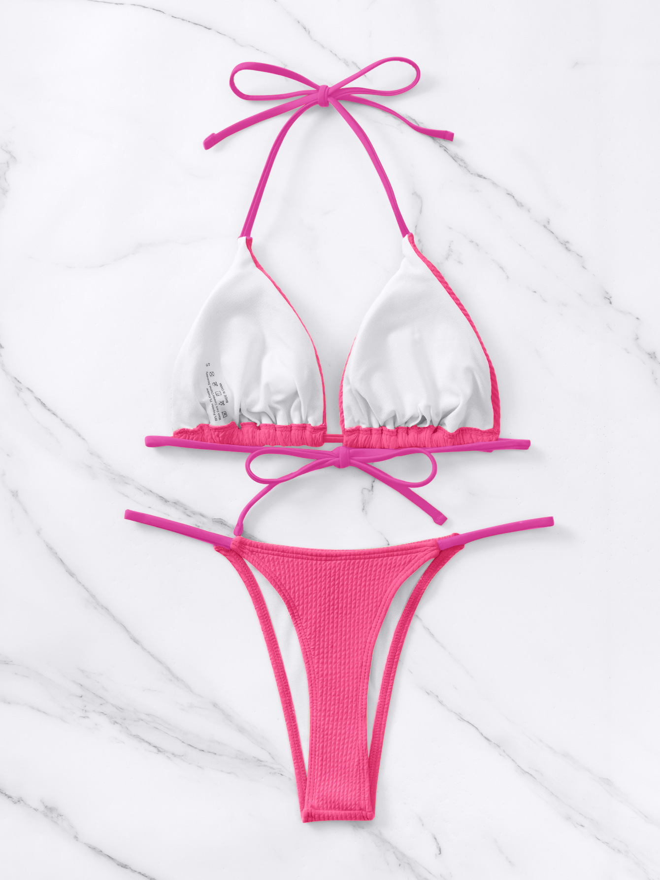 Bikini Solid Color Thread Sunken Stripe Lace up Sexy Halter Bikini Split Swimsuit