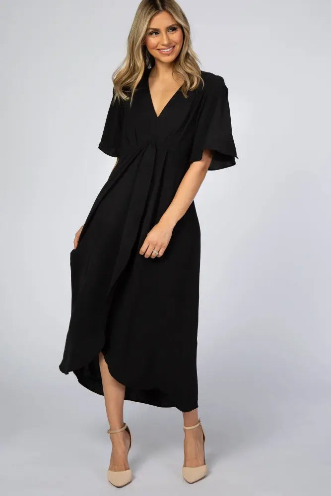 Black Open Sleeve Maternity Wrap Midi Dress