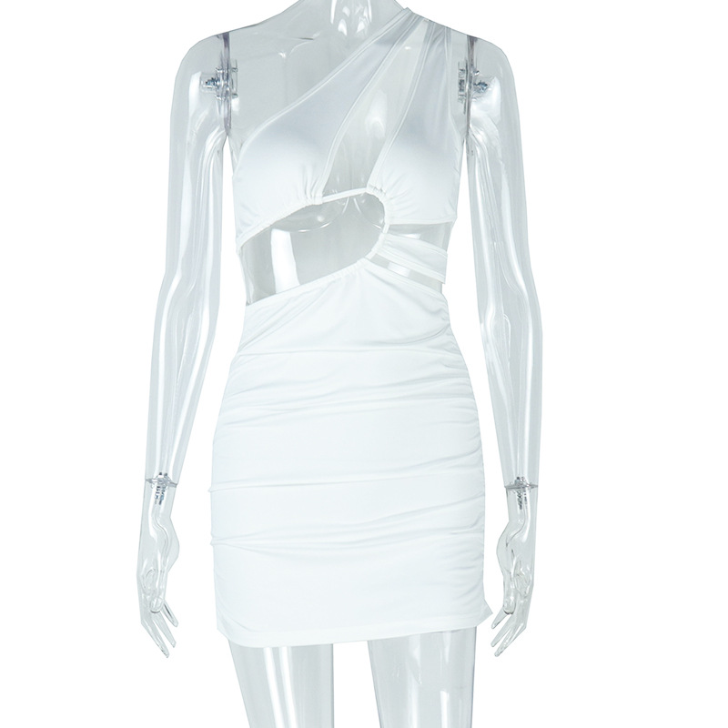 Casual Women Clothing Hollow Out Cutout Comfortable Elegant Simple Solid Color Hip dress Sleeveless Diagonal Collar Short Dress