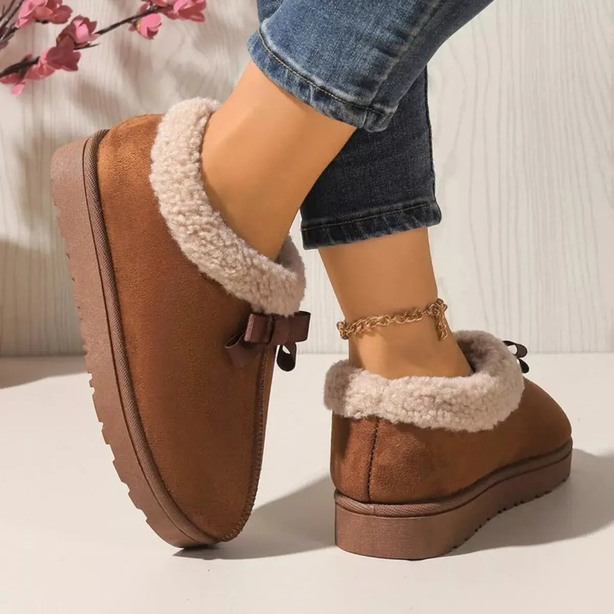 Cozy Bowknot Plush Lined Slip-Ons