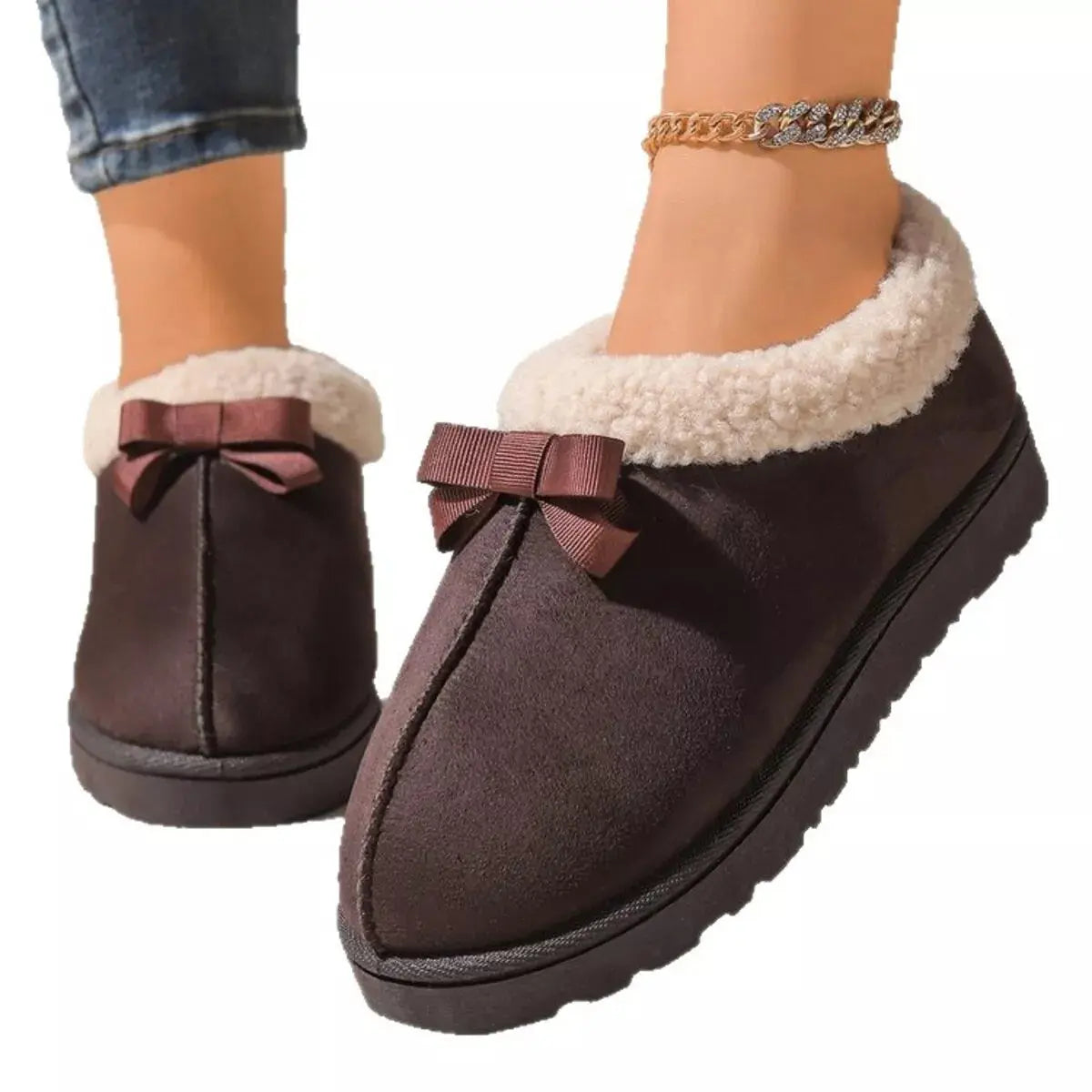 Cozy Bowknot Plush Lined Slip-Ons Simply Love