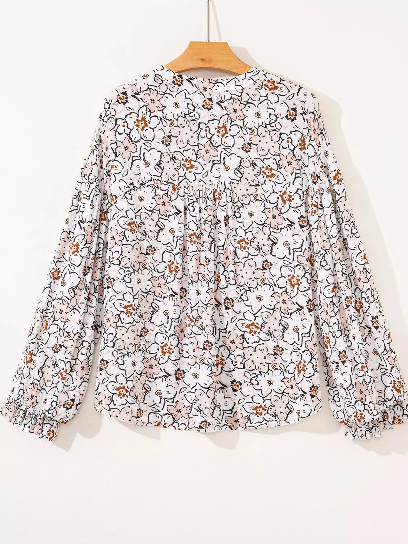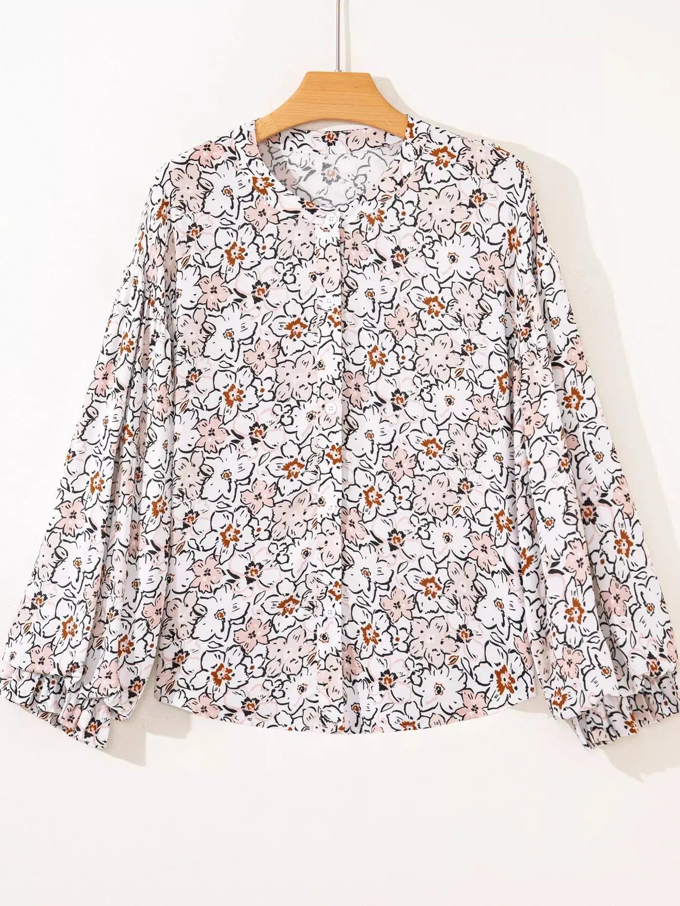 Floral Print Frilled Puff Sleeve Button Down Shirt Simply Love