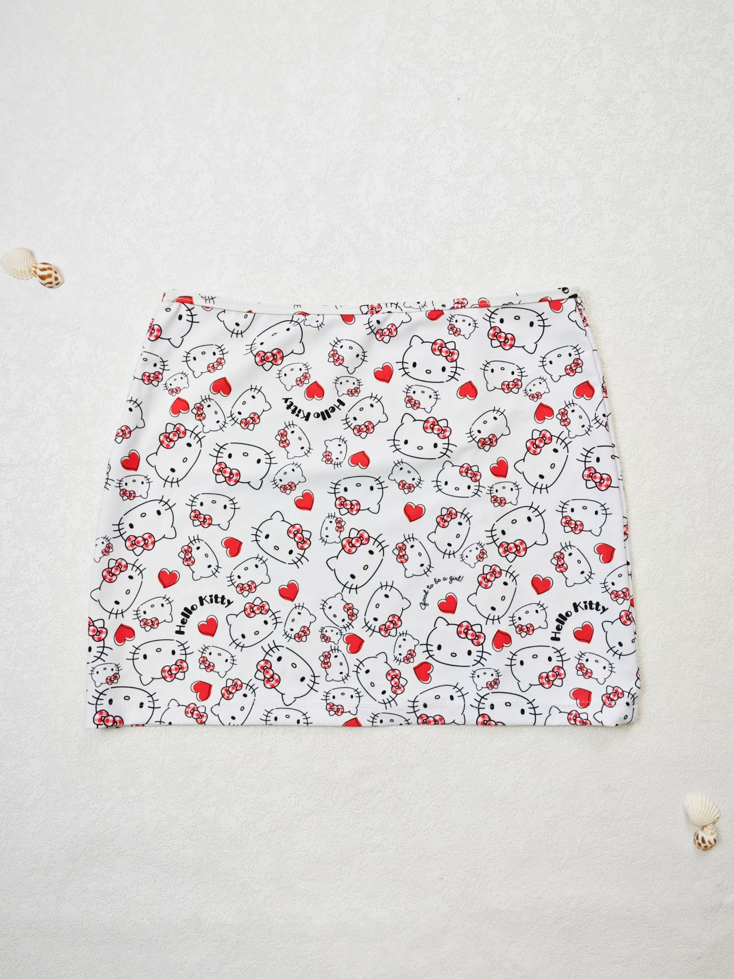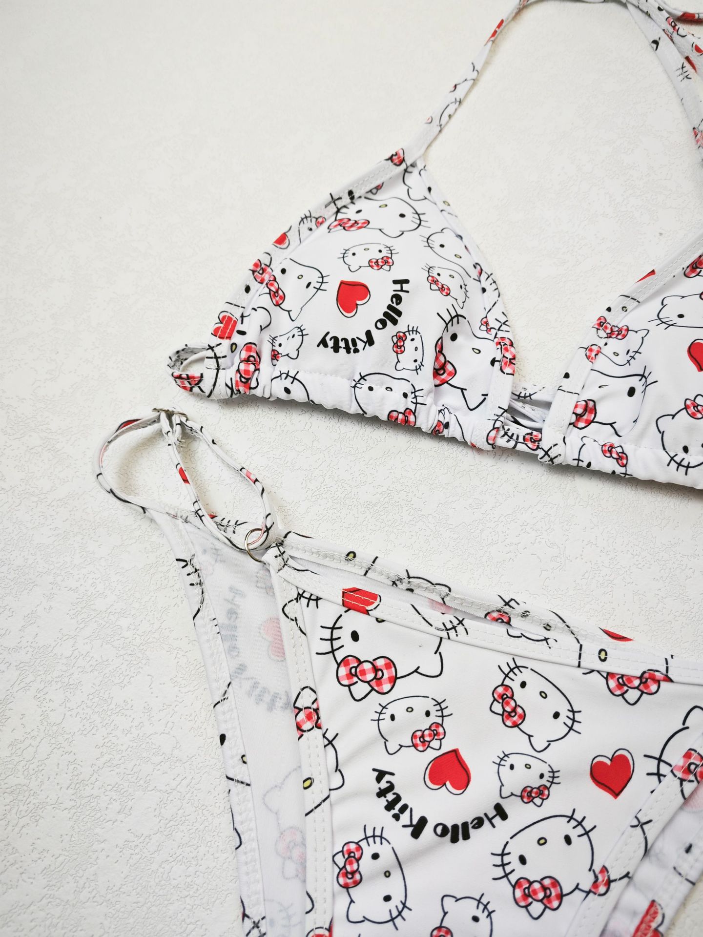 Kitty Cat Printed Three Piece Set Fresh Bikini Women Split Swimsuit