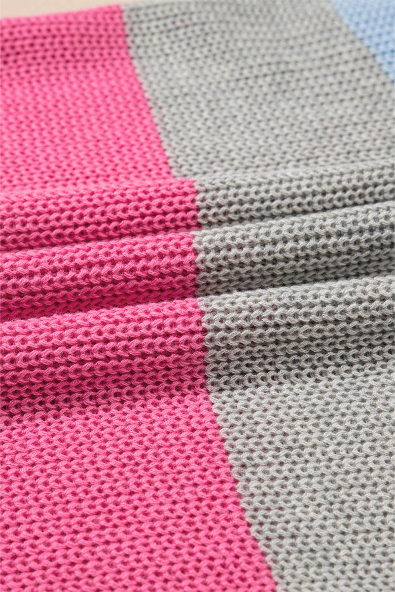 Light Blue Color Block Notch V Neck Sweater T Shirt for Women - Love Salve