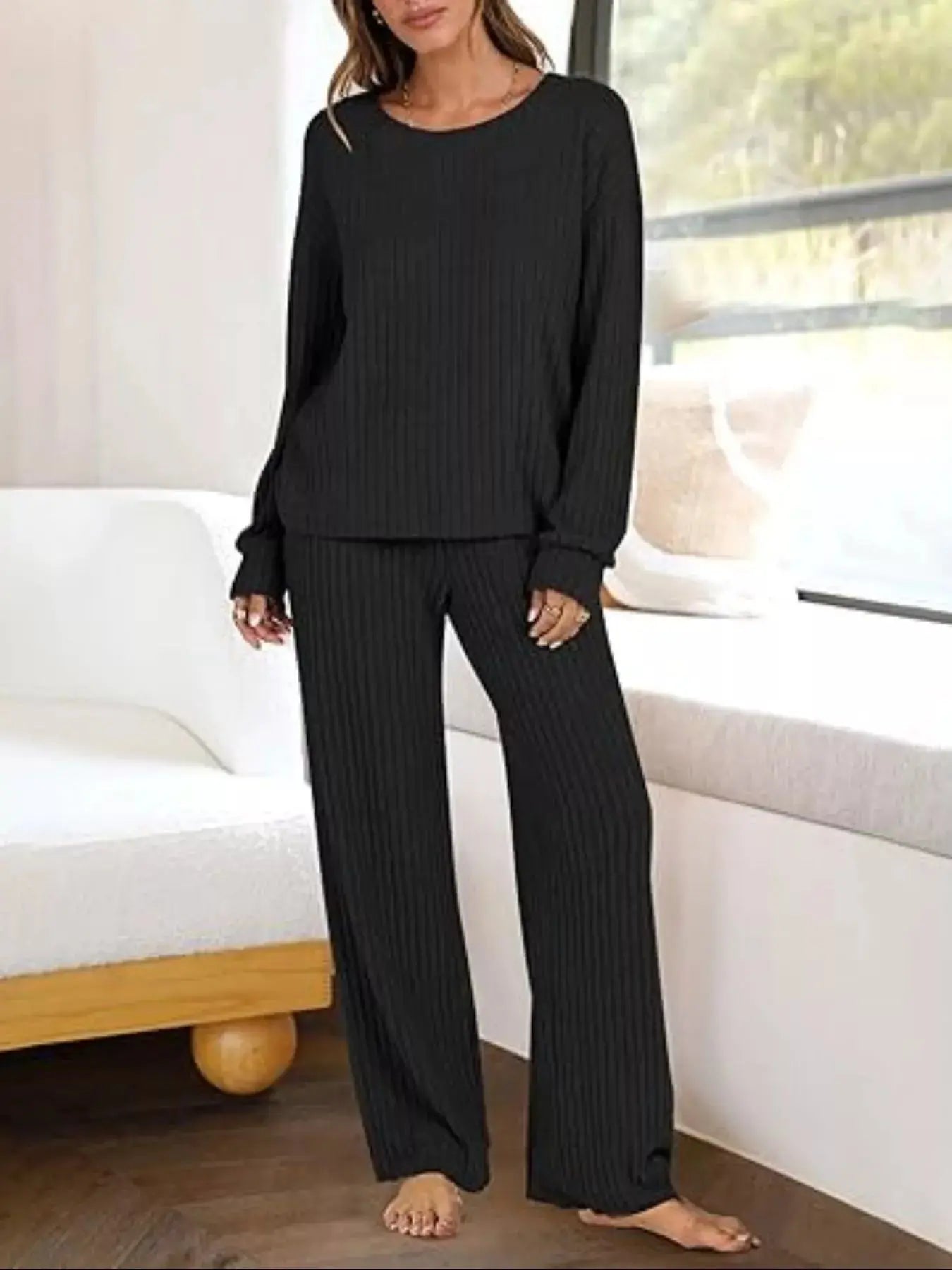 Relaxed Fit Ribbed Knit Top and Pants Set Simply Love