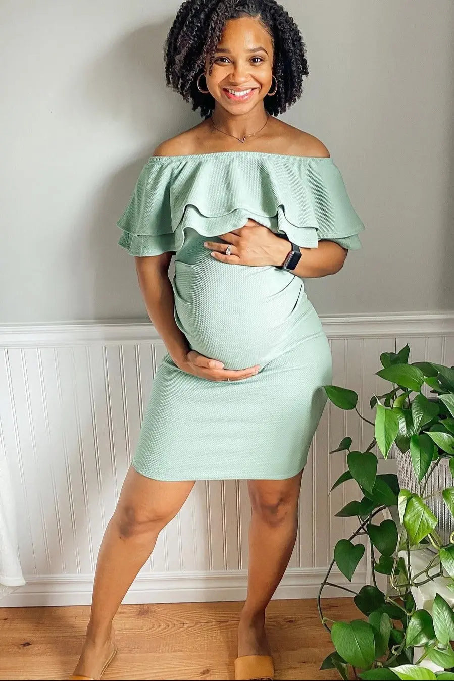 Turn heads at your next special event with this elegant off shoulder fitted maternity dress. Designed to showcase your beautiful bump, this dress features a flattering ruched bodice and a sleek, body-hugging silhouette that provides both comfort and style. The off-shoulder neckline adds a touch of romance and sophistication, making it the perfect choice for baby showers, photoshoots, or any occasion you want to feel your best. Soft, stretchy fabric ensures a perfect fit from bump to baby, while the timeless design makes it a wardrobe favorite throughout your pregnancy journey.