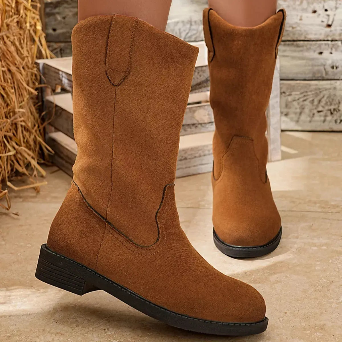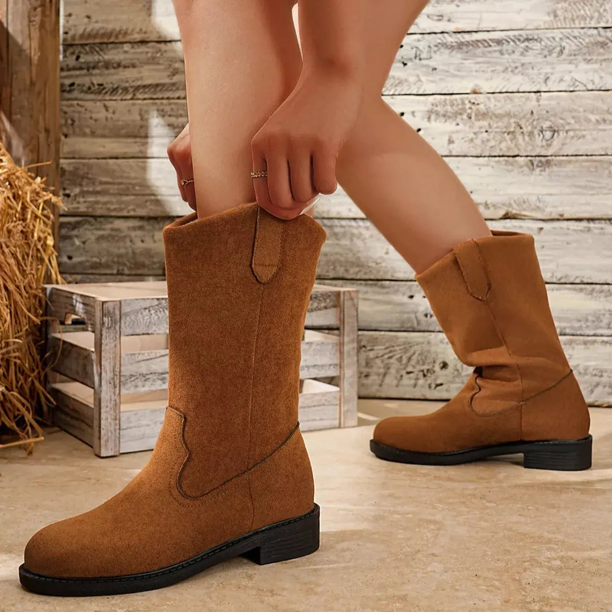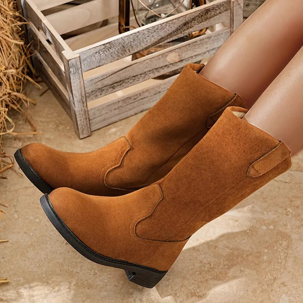Suede Mid-Calf Western Boots Simply Love