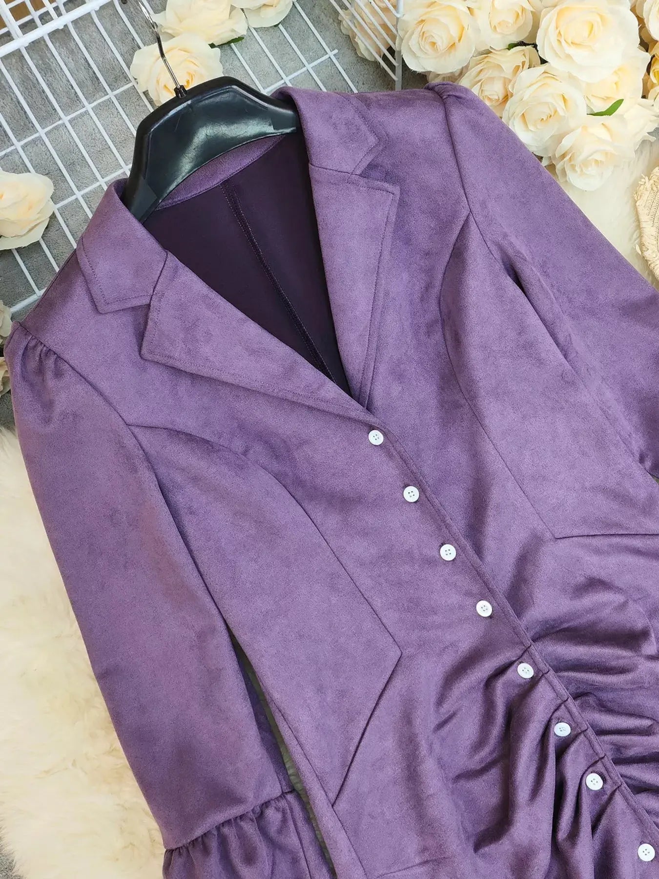 Velvet Ruched Buttoned Midi Dress With High Low Hem Ruffles Simply Love