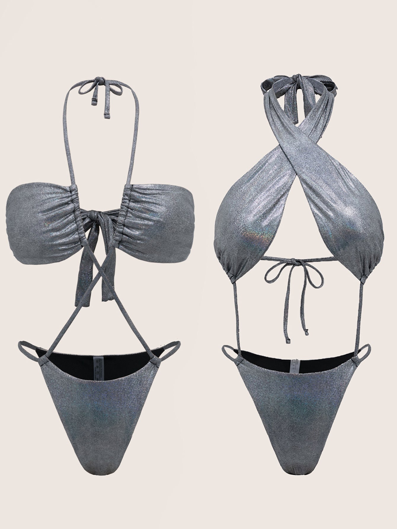 Bikini Double One Piece Swimsuit Cross Bikini Swimsuit Women Sexy Swimsuit Solid Color Bikini