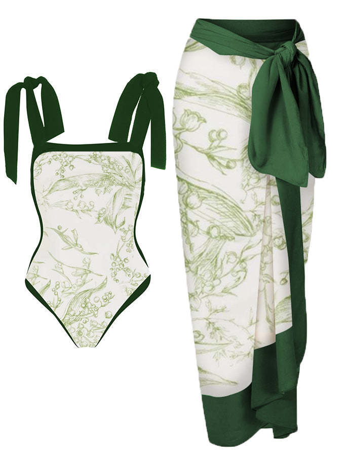 Customized Printed Two-Piece One-Piece Swimsuit Conservative Cover Hip Skirt Swimsuit