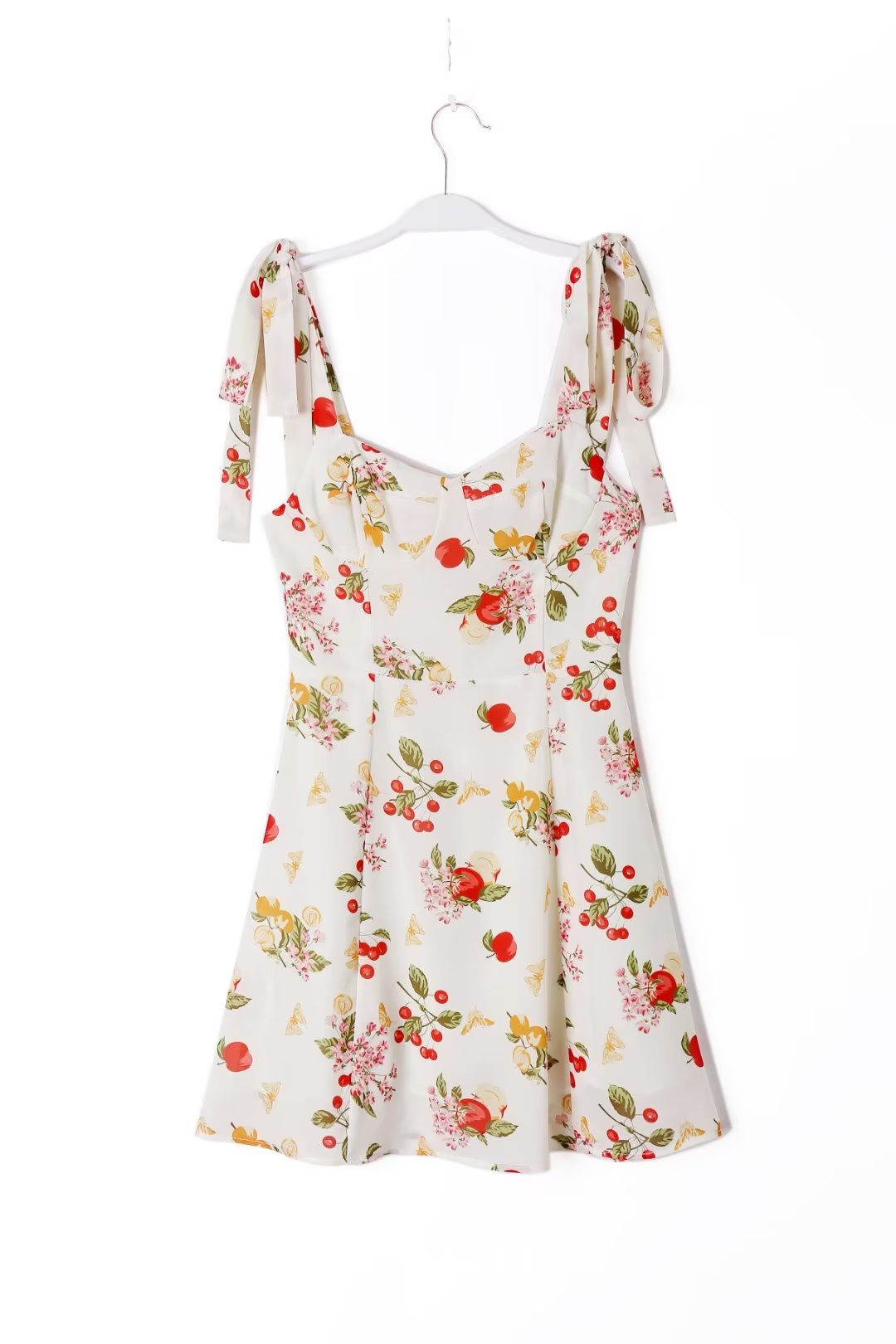 Fruit Printed Cami Dress for Women Summer Pastoral Wide Shoulder Strap Tied Spaghetti Strap Dress