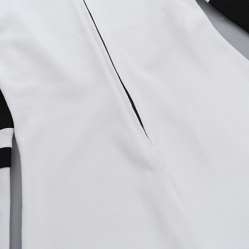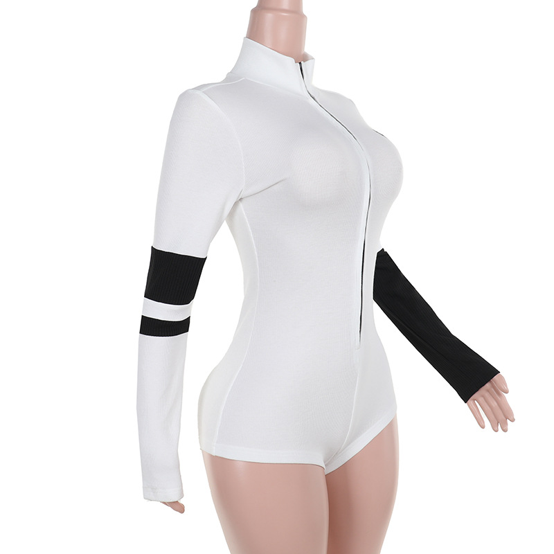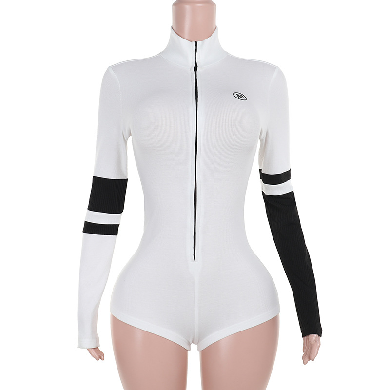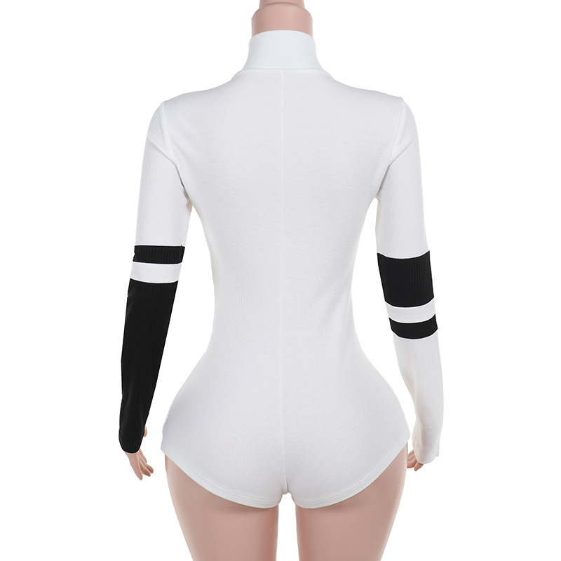 Knitted Contrast Color Turtleneck Zipper Tight Jumpsuit Locomotive Sexy All Matching Women Clothing