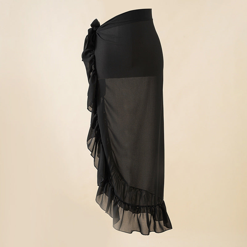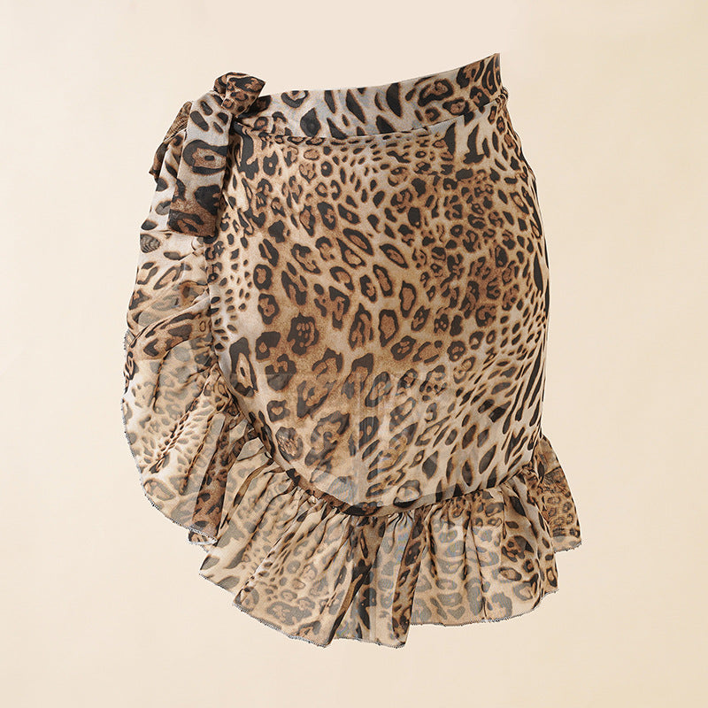 Summer Seaside Vacation Chiffon Printing Tie Dye Bandage Beach Wrap Skirt Bikini Swimsuit Blouse