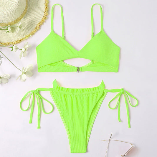 Metal Shell Decoration Solid Color Tied Sexy Split Two Piece Set Direct Bikini