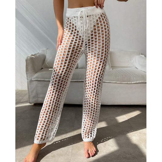 Spring Ladies Knit Casual Sexy Slim Beach Hollow Out Cutout out Sun Protective Pants Crochet hook