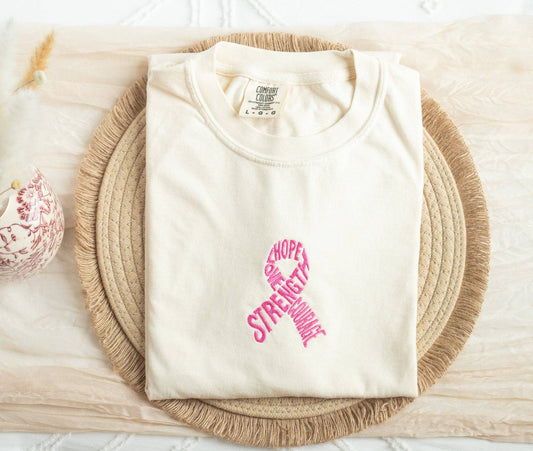 Embroidered Pink Ribbon Breast Cancer Awareness Tee