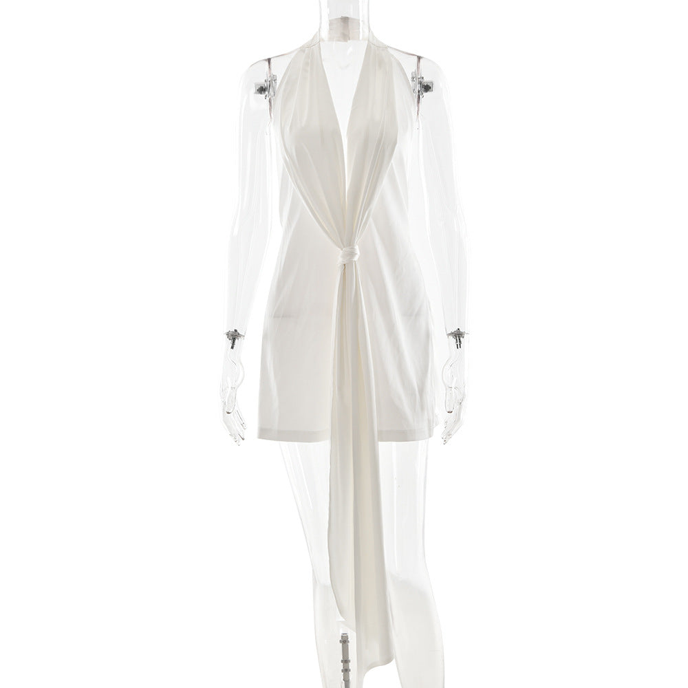 Halter Deep V Plunge Sexy Hip Dress Elegant Backless Twist Waist Trimming Dress