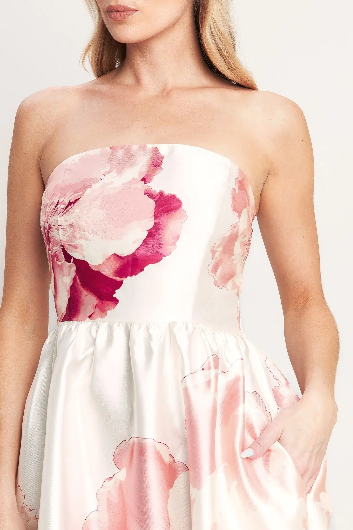 Luxe Peony Strapless Printed Woven Floral Maxi Dress Flying Tomato