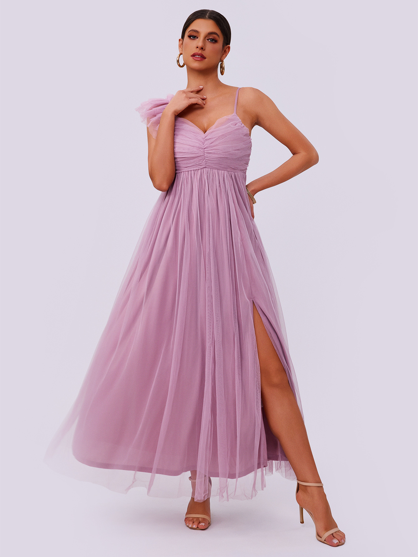 Mesh Sand Split Solid Color Dress