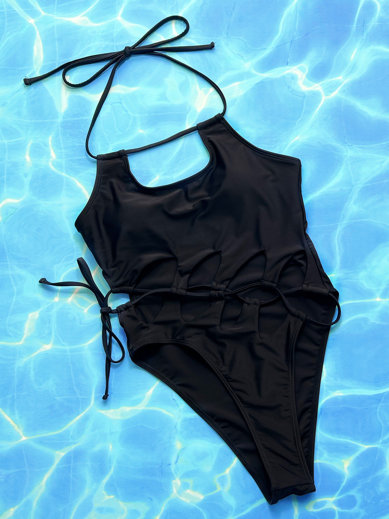 One-Piece Bikini Bikini Solid Color Hollow Out Cutout out Strap One Piece Swimsuit Crisscross