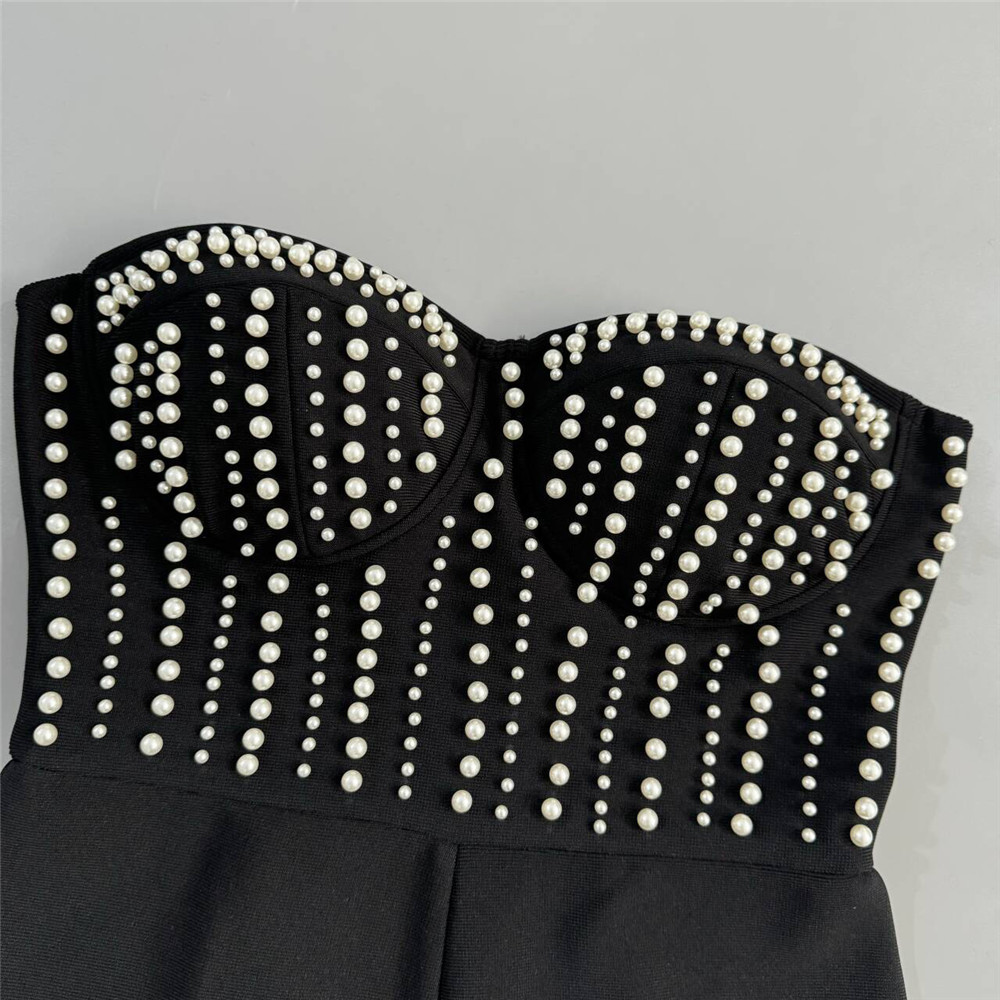 Sexy Pearl Tube Top Elegant Slim Bootcut Pants Bandage Jumpsuit