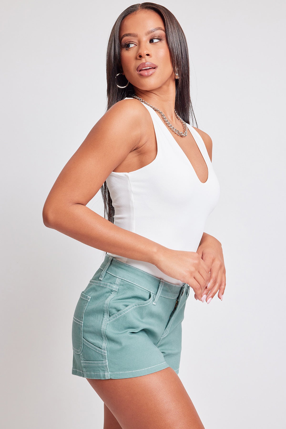 Add some trendiness to any Summer ‘fit with our Women's Mid Rise Carpenter Short! These comfy mid-rise twill shorts feature contrast stitching and carpenter details such as large pockets and a hammer loop. These shorts are designed to have a slightly relaxed fit for a more casual and cool look. Also featuring a 1 button closure with zipper and belt loops. Available in a wide variety of colors to choose from. Style these with a cute crop top and sneakers for an easy-going outfit!