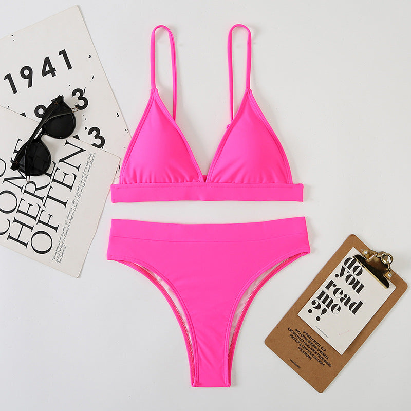 Lady Sexy Split Backless Strap High Waist Bikini Multi Color Beach Swimsuit