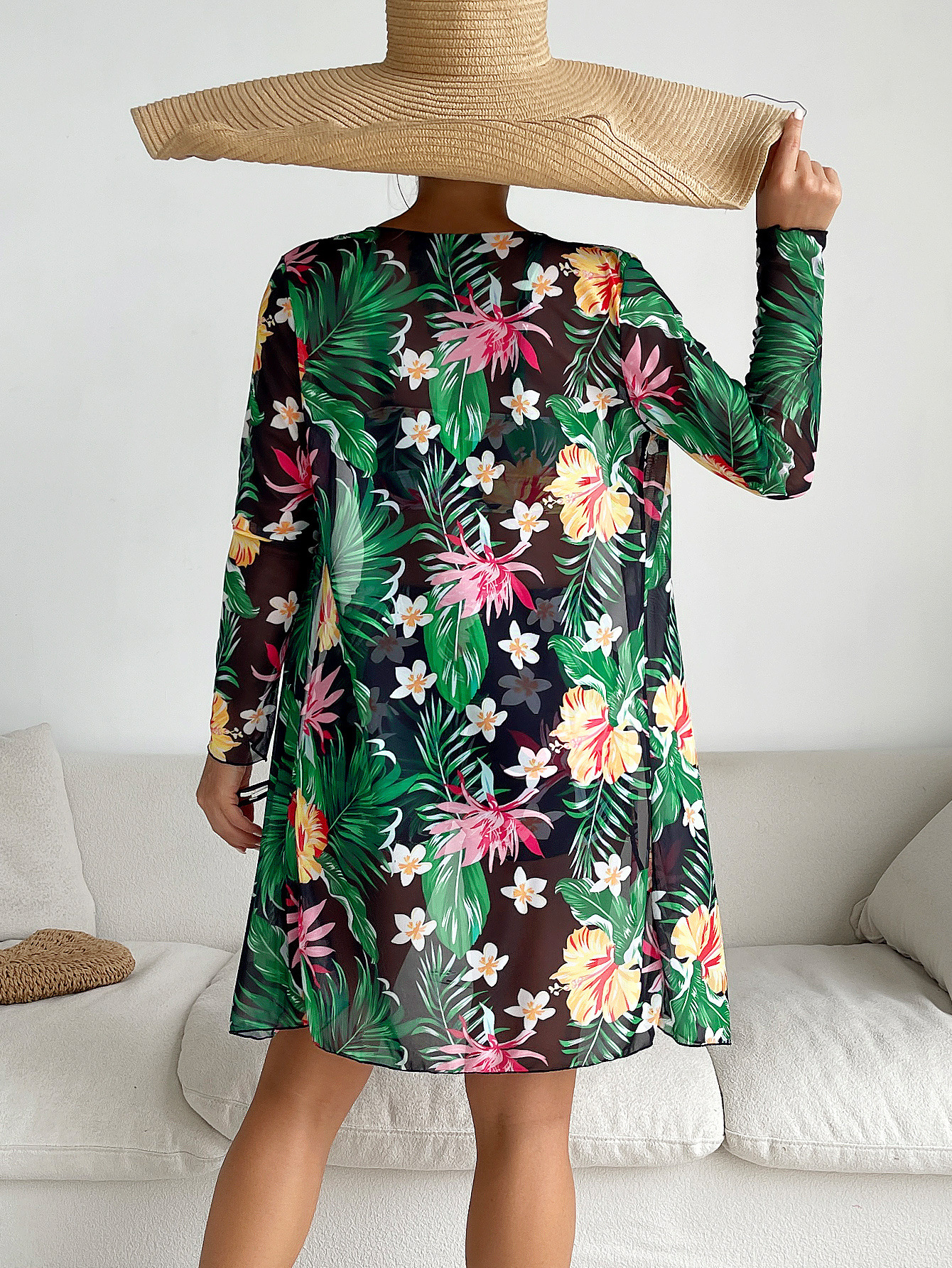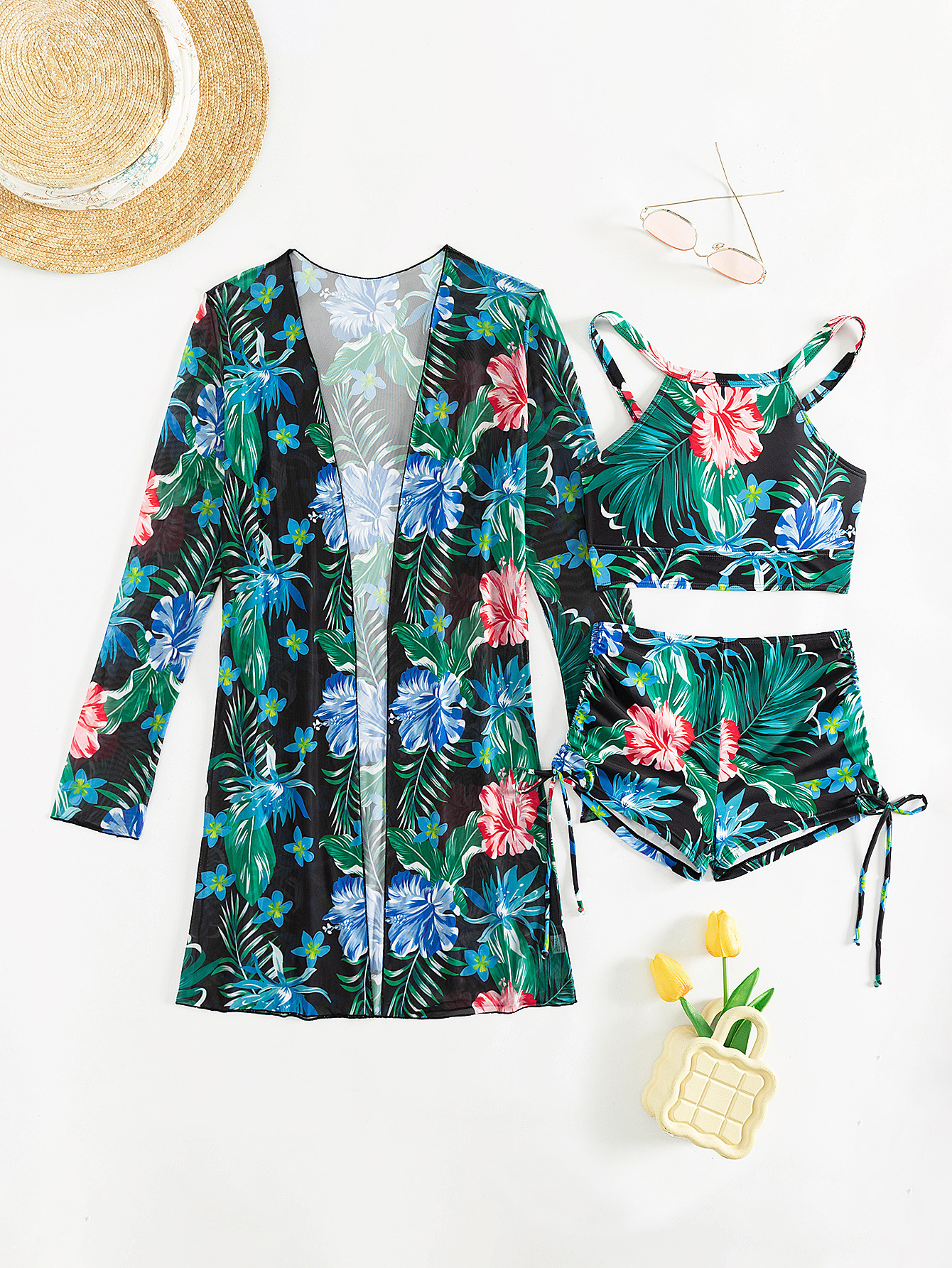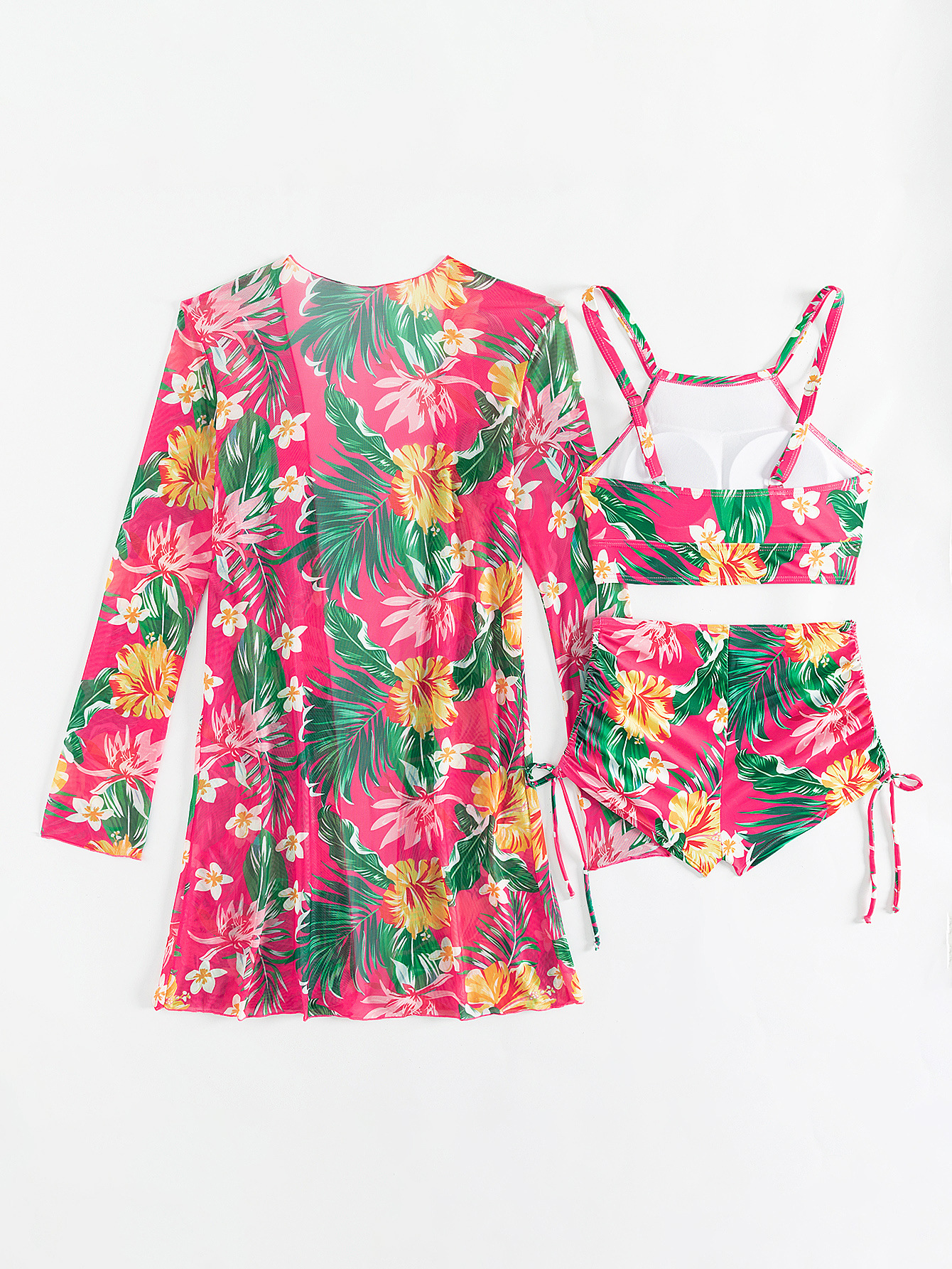Swimsuit Women Split Three Piece Boxer Shorts Printing Mesh Red Conservative Swimsuit