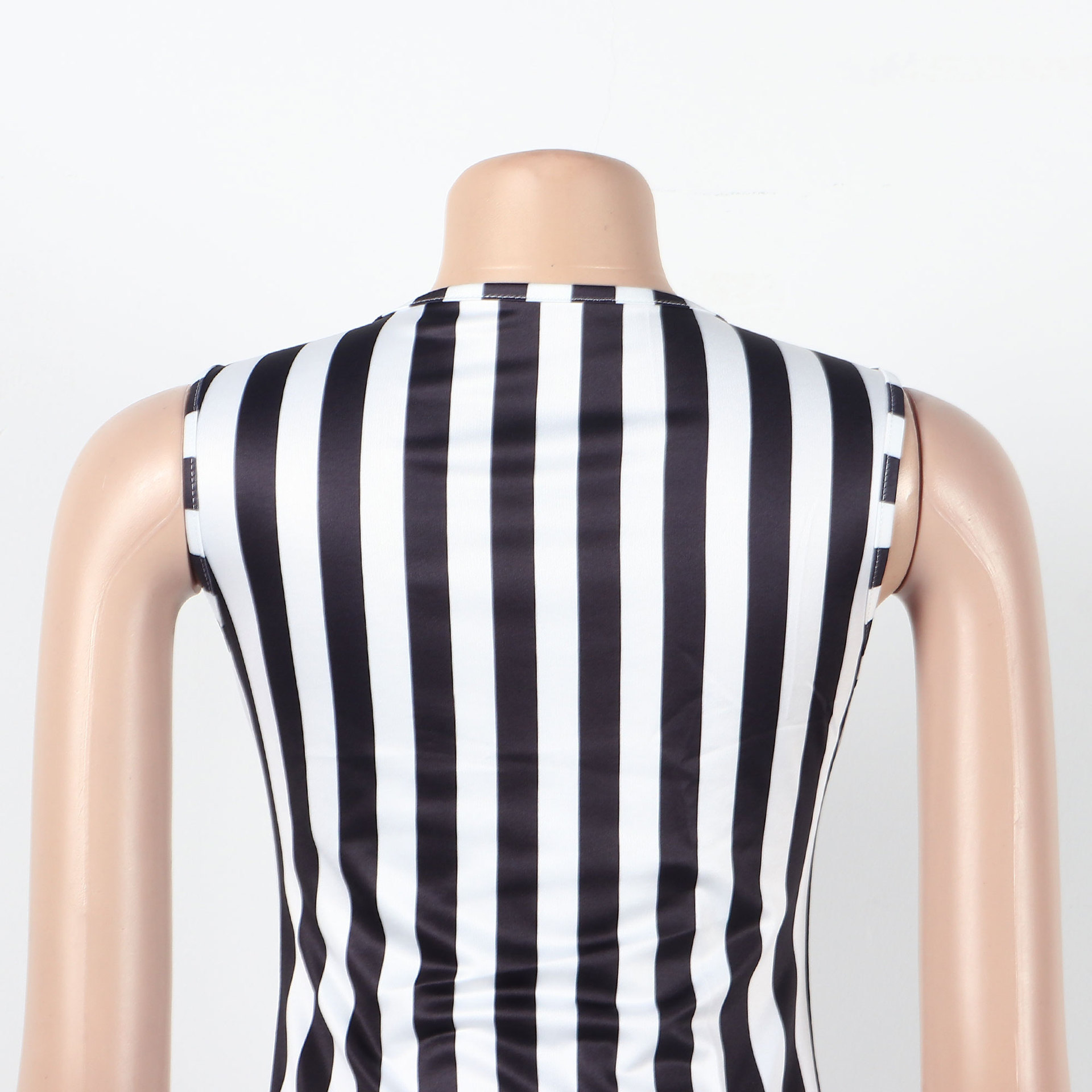 Women Clothes Stitching Printing Striped Stitching Wooden Ear Sleeveless Vest Dress