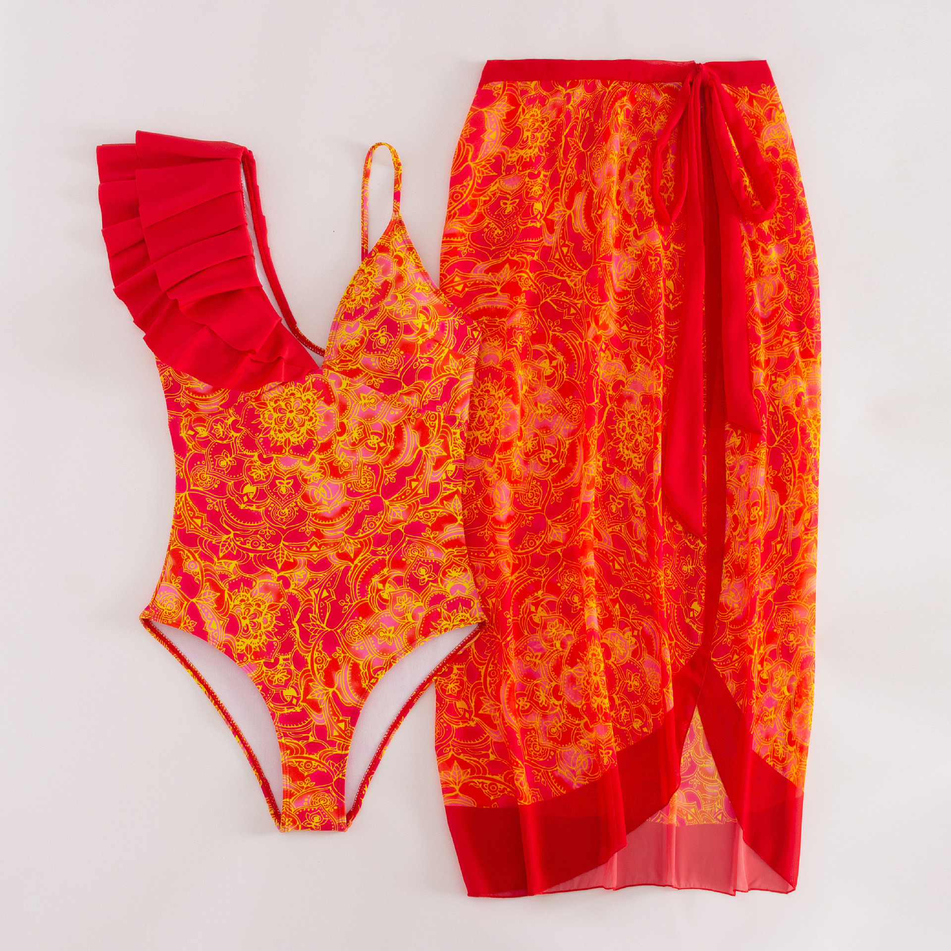 Women’s Floral One-Shoulder Ruffle Swimwear