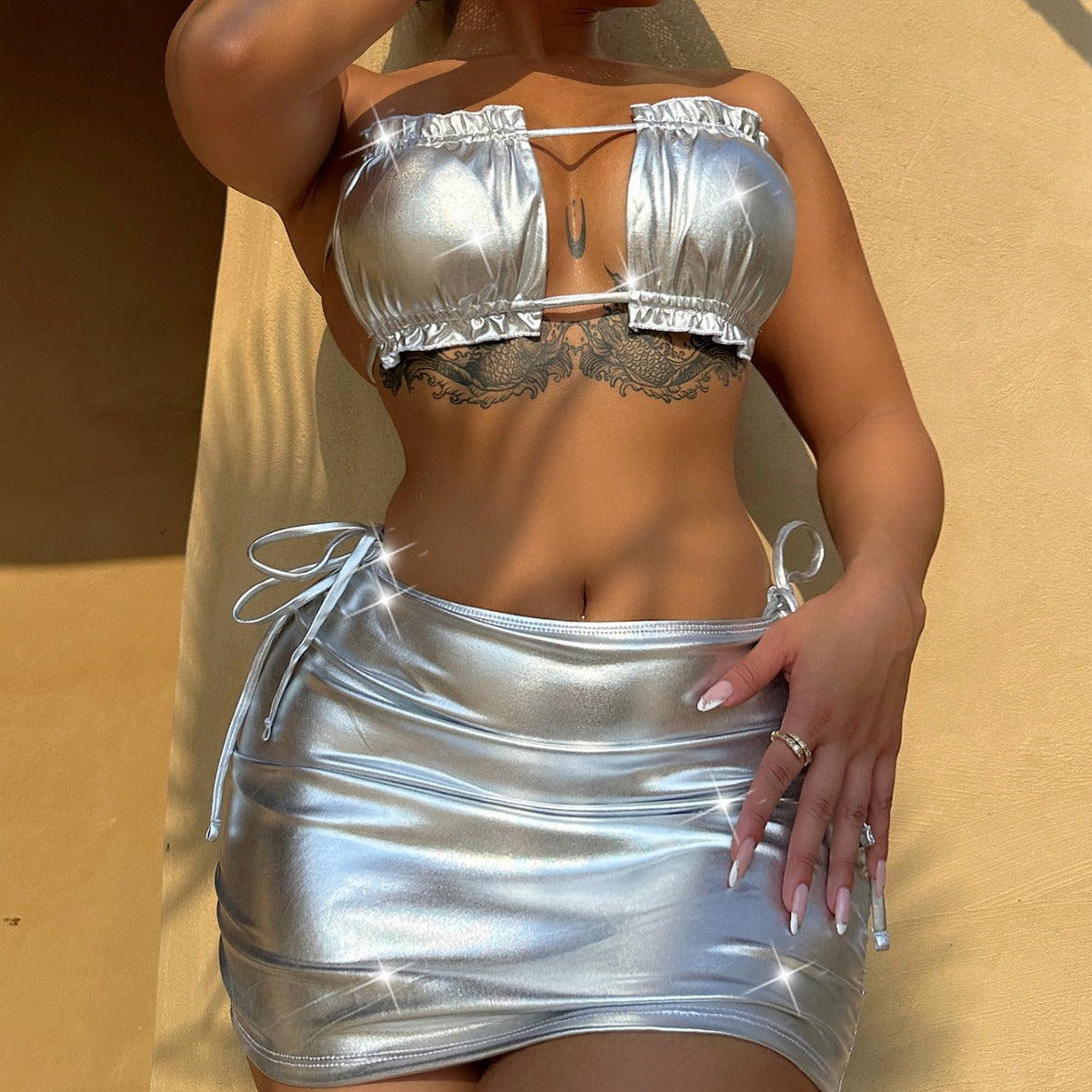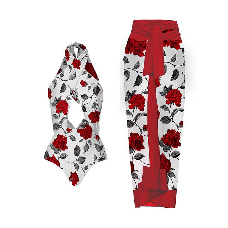 Swimsuit color matching sexy cutout one piece women wrap skirt swimsuit suit