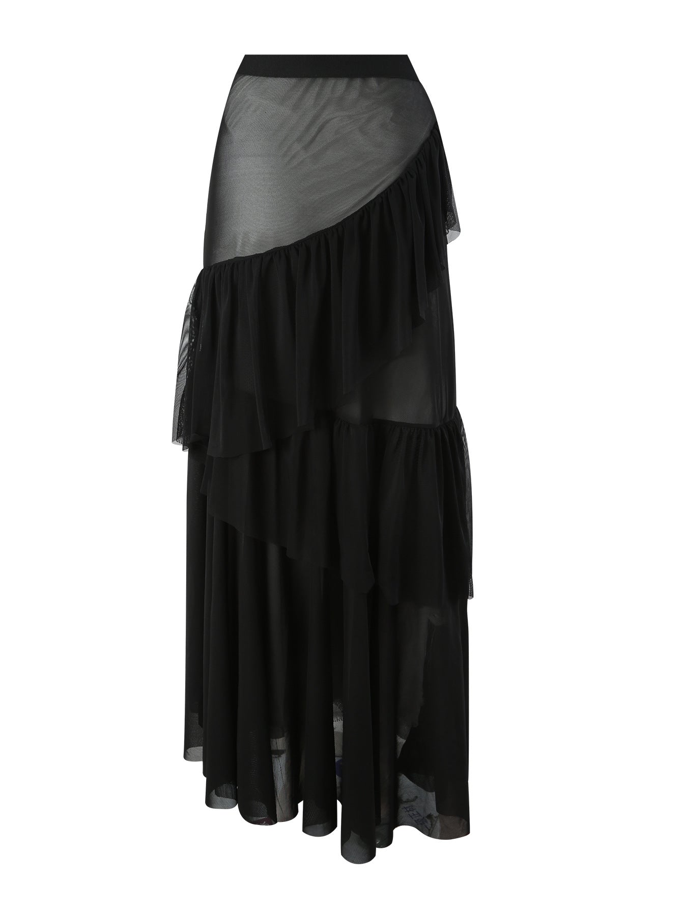 Lonkey Swimsuit Two Piece Solid Color Transparent Mesh Flying Edge Skirt Swimsuit