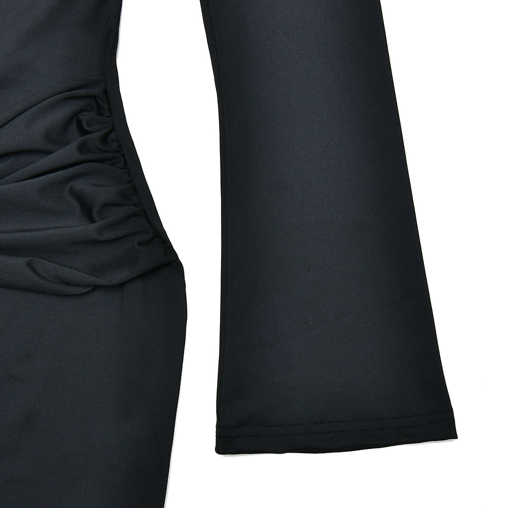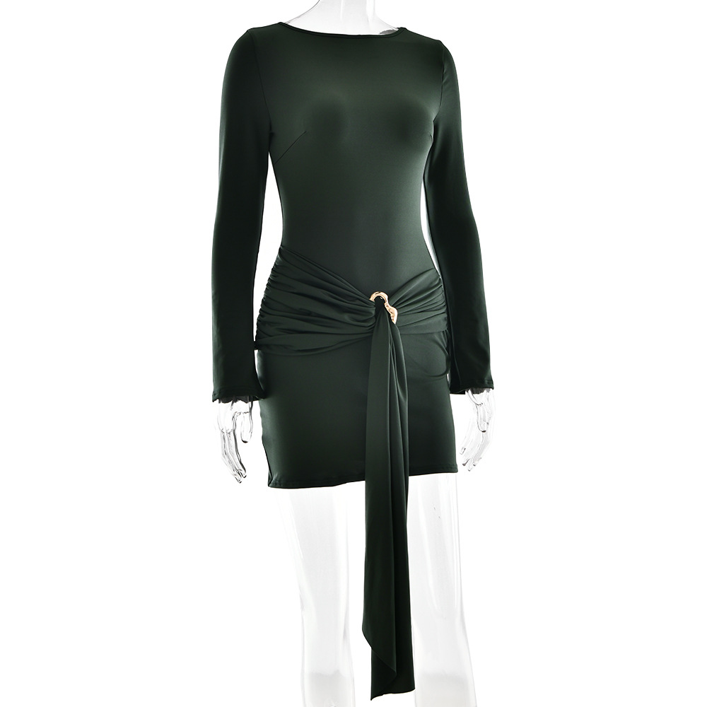 Sexy Elegant Women Slim Fit round Neck Hip Dress Arrival Lace up Tight Long Sleeve Dress