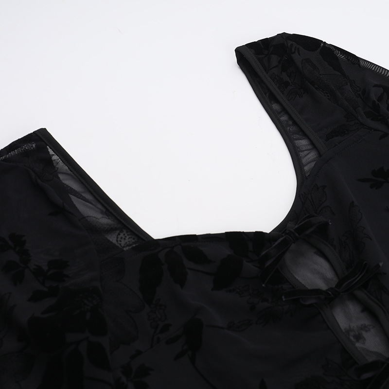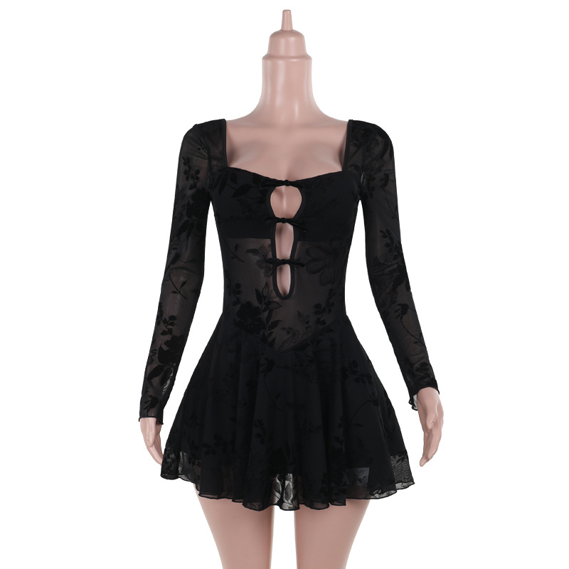 Sexy See through Hollow Out Cutout Flocking Women Sexy Slim Hip Dress