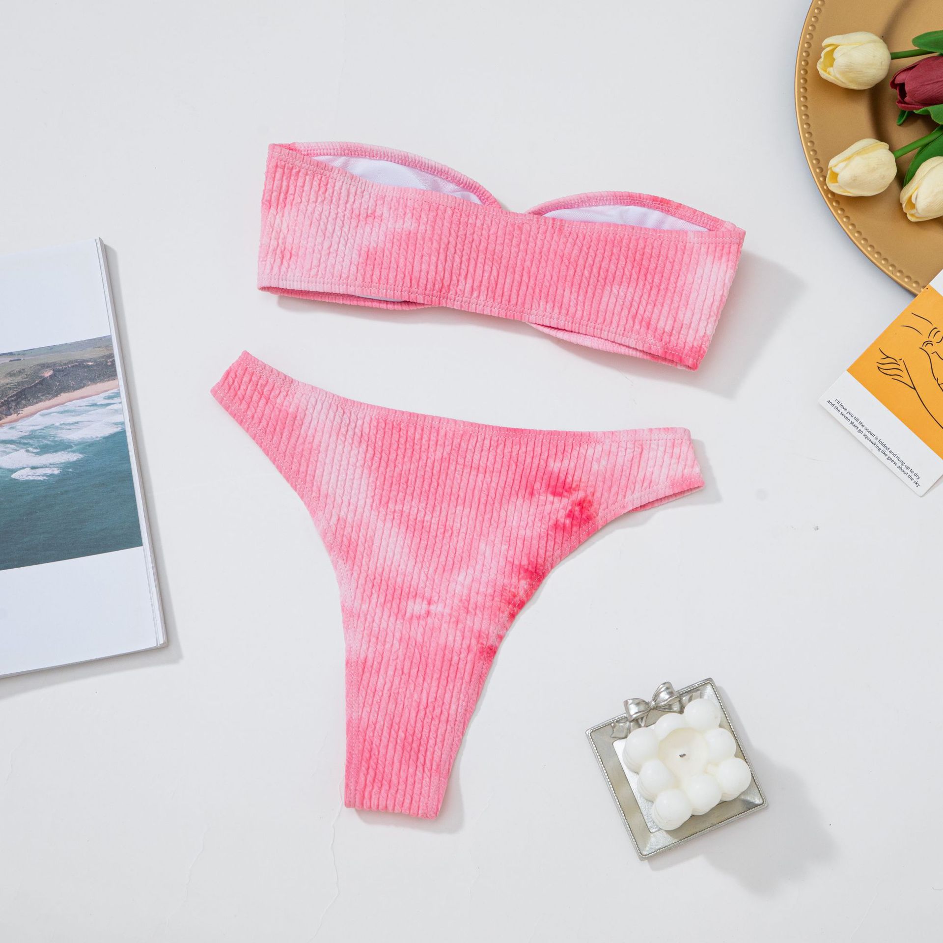 Sexy Tube Top Pink Blooming High Waist Bikini