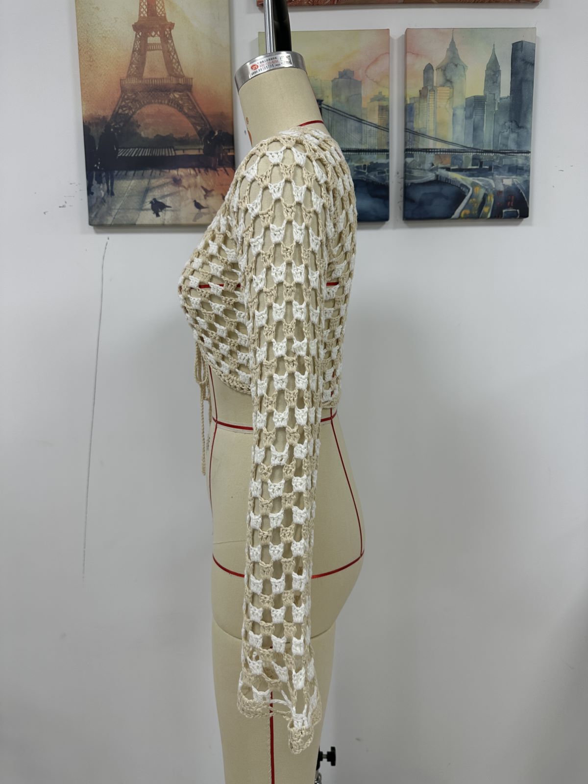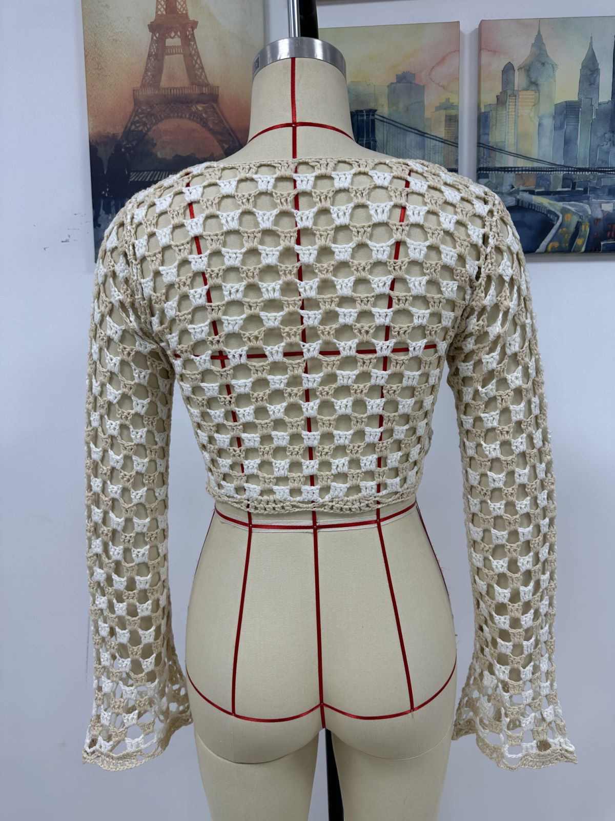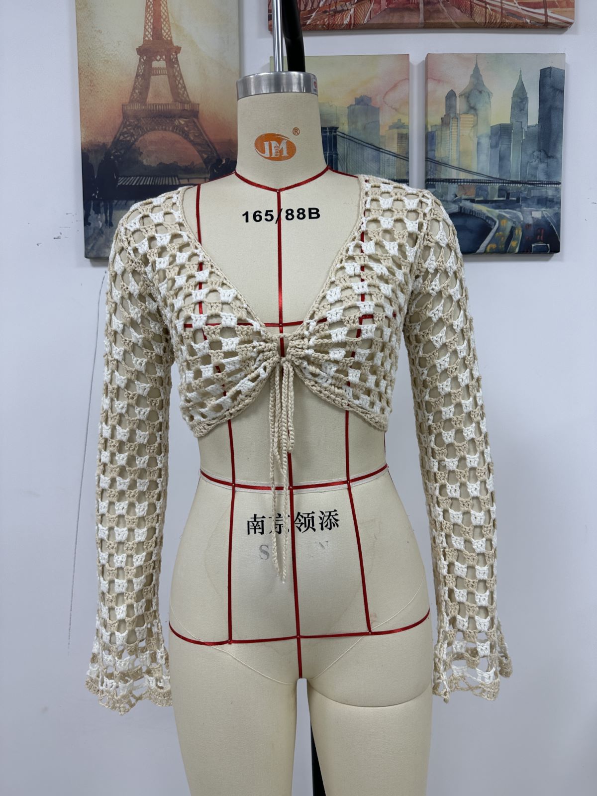 Spring Summer Knitted Women Hand Crocheting Blouse Hollow Out Bikini Beach Cover up Women Knitwear