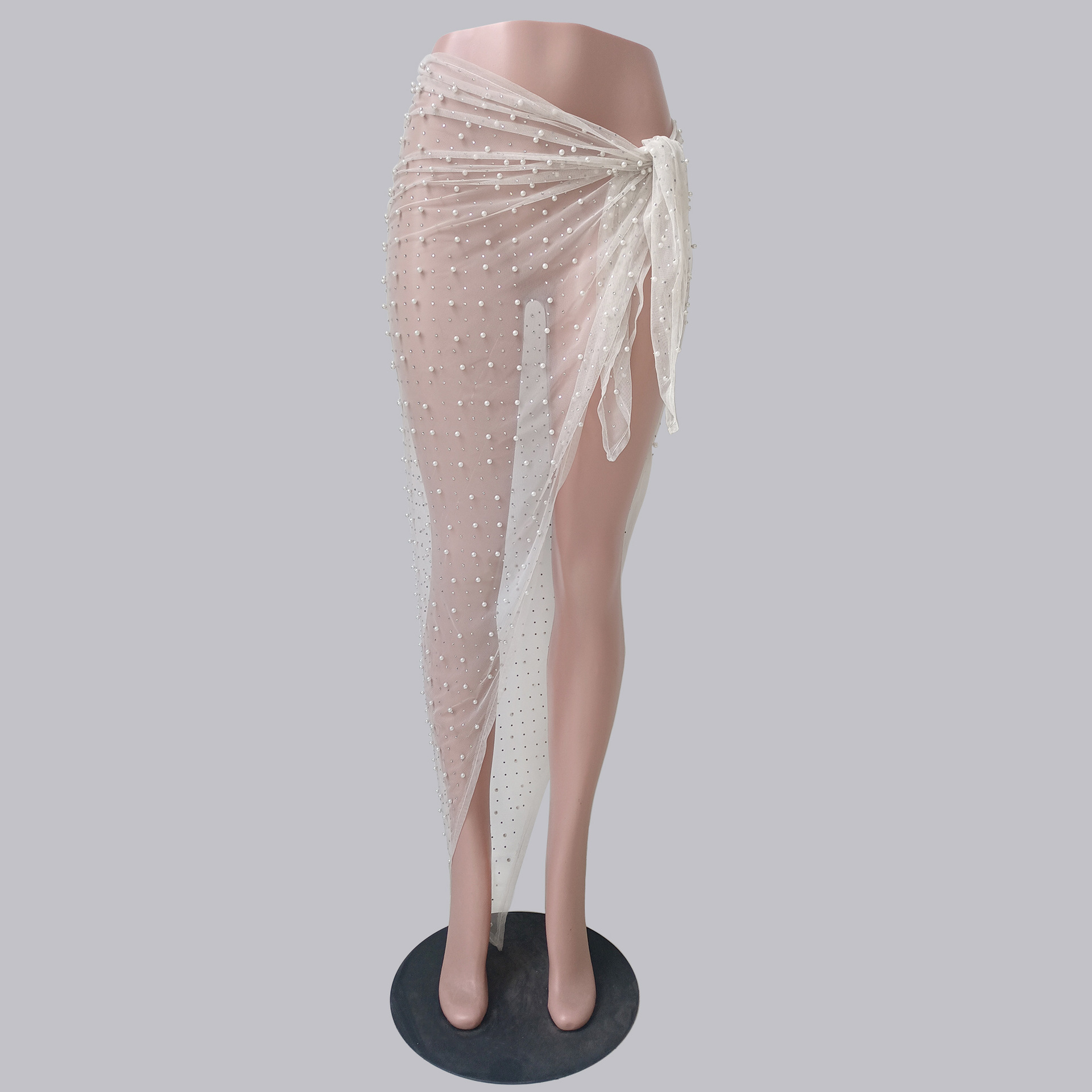Spring Summer Beaded Rhinestone Mesh Wrap Skirt