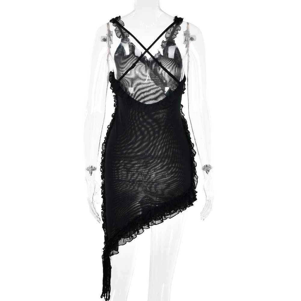 Summer V neck Slip Dress Women Sexy Backless Stitching Lotus Leaf Dress