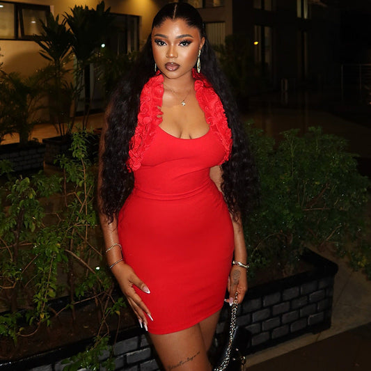 Women Clothing Solid Color Dress Sexy Ruffles Spaghetti Straps Sleeveless Backless Hip