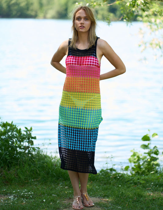 Knitted Wide Horizontal Color Pattern Vest Dress Holiday Casual Beach Bikini Cover