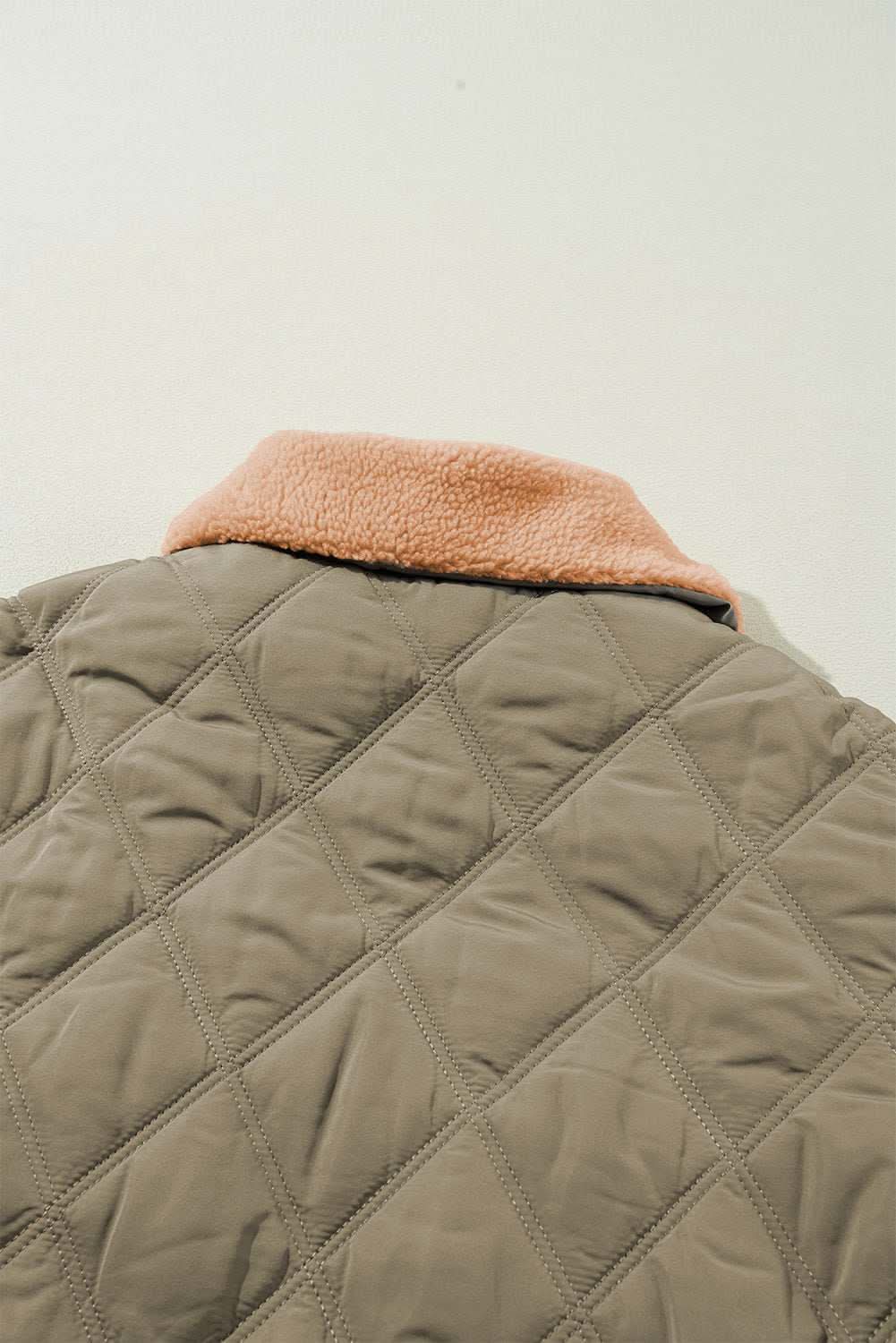 Made from 100% polyester, this quilted puffer jacket offers warmth with a lightweight feel. The plush teddy collar adds a soft, cozy touch, while the jungle green color pairs with casual outfits. It features a turn-down collar, two flap pockets for essentials, and a secure closure with a zipper and button combination. The long sleeves and shift silhouette provide a relaxed, daily-wear fit ideal for layering in cooler weather.