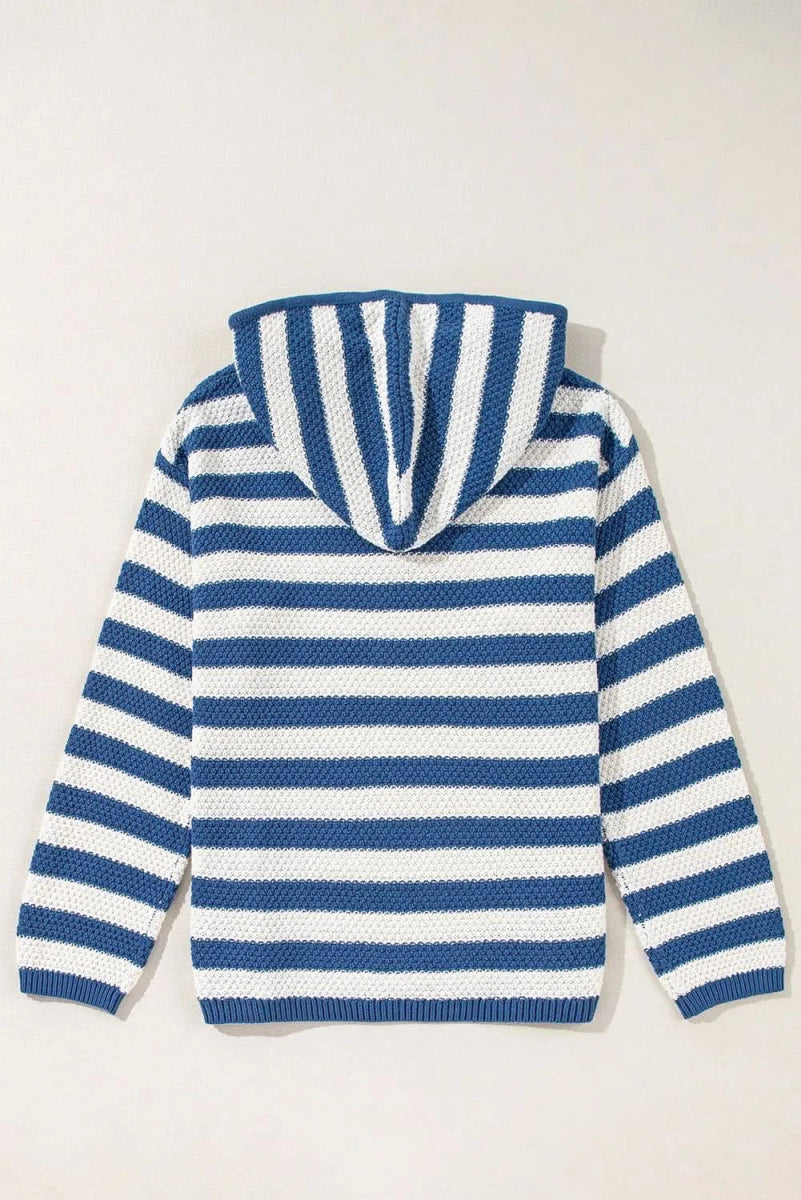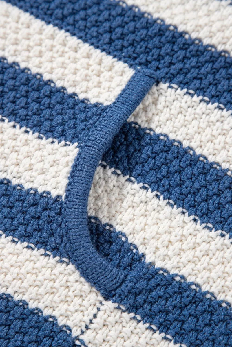 Care is simple: machine wash cold and tumble dry low, making maintenance effortless. Available in sizes S through XL, this sweater is designed to be a reliable cornerstone for your wardrobe. The blue and white striped knit showcases a classic pattern with durable construction for season after season wear.