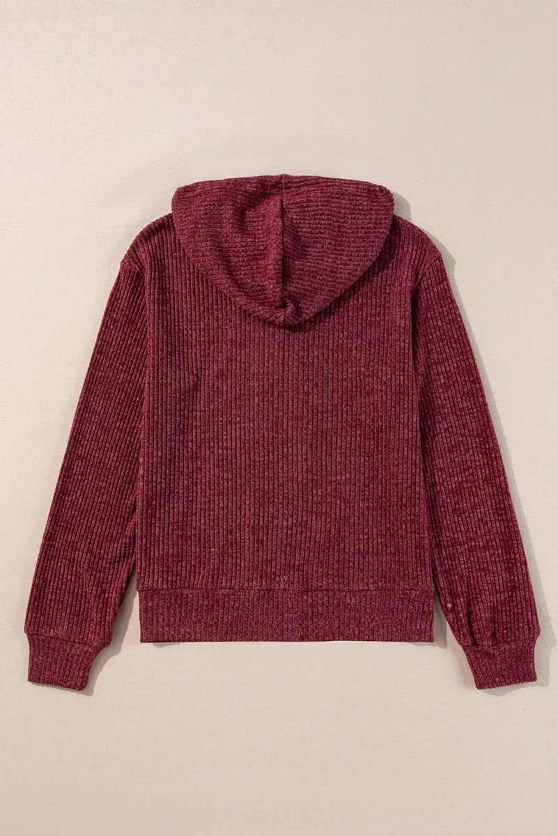 Red Dahlia Ribbed Zip Up Front Drawstring Hoodie - Love Salve