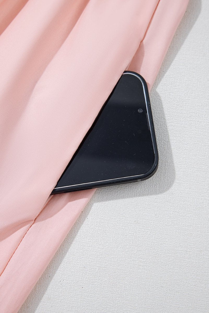 Pink V Neck Flutter Sleeve Smocked Bodice Maxi Dress - Love Salve
