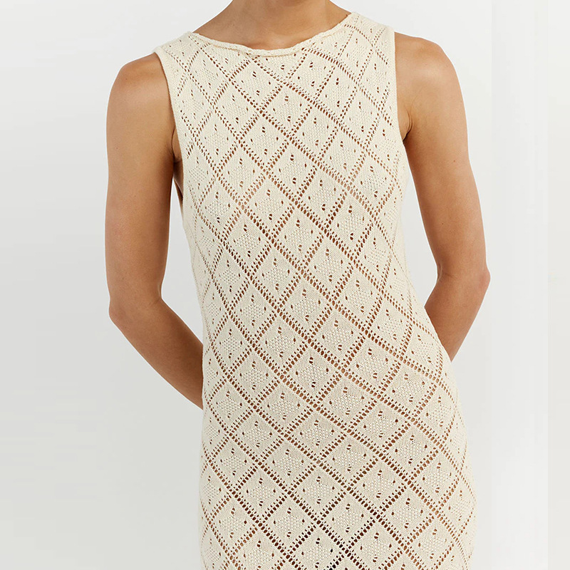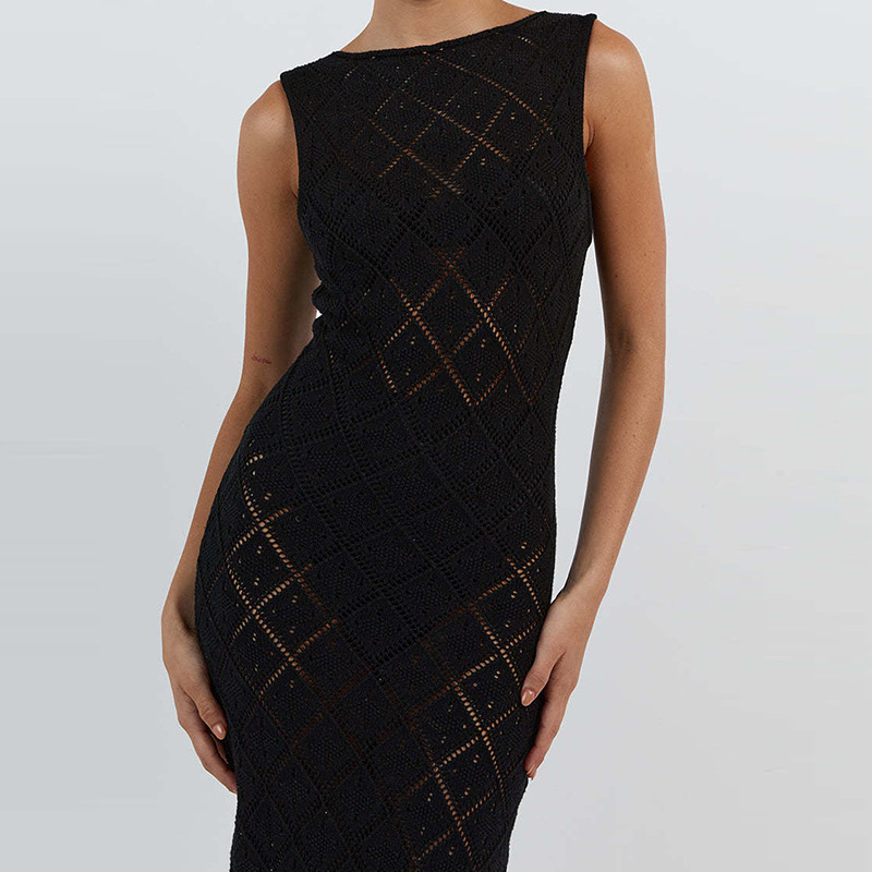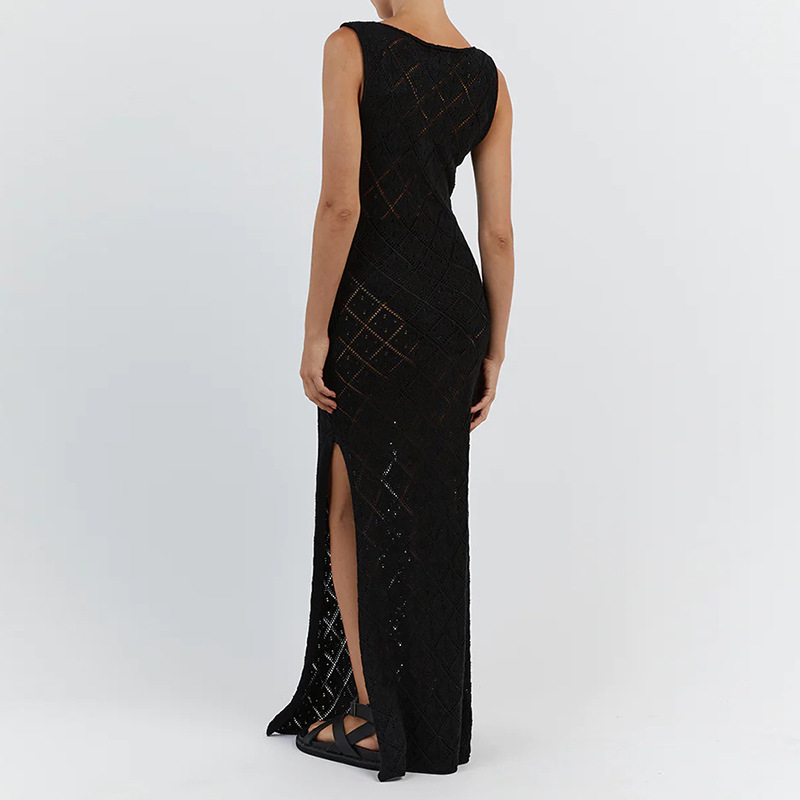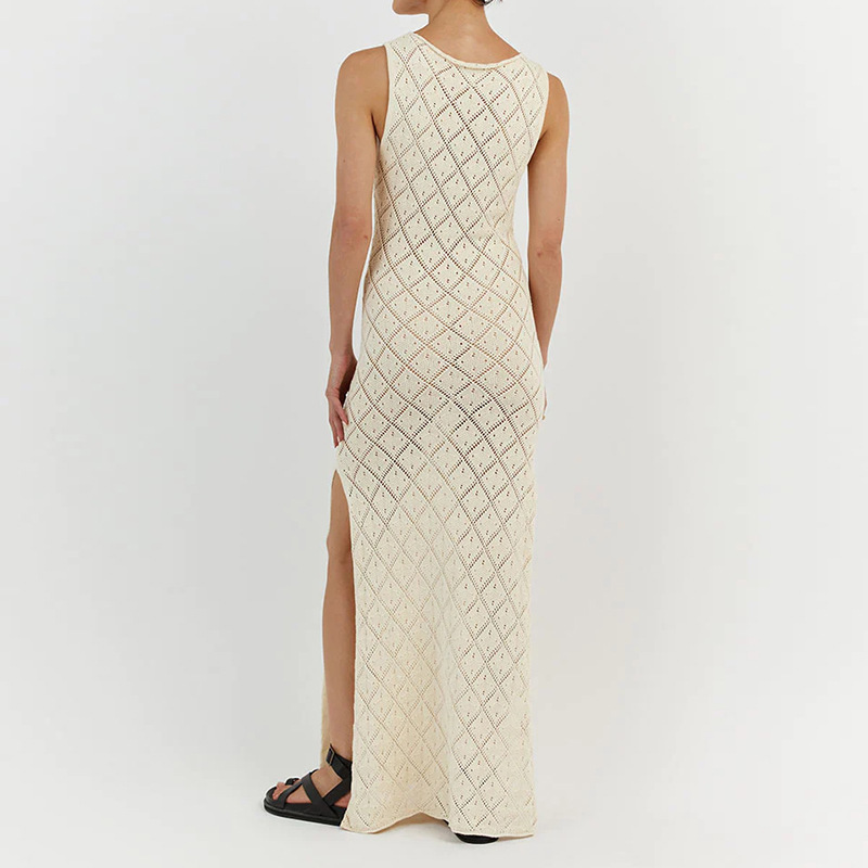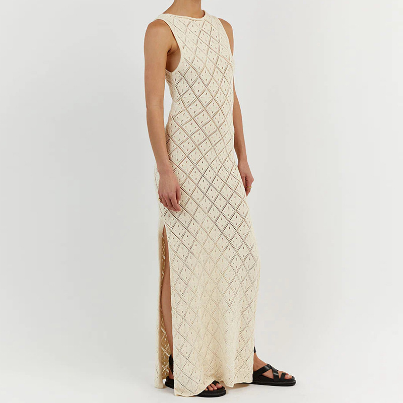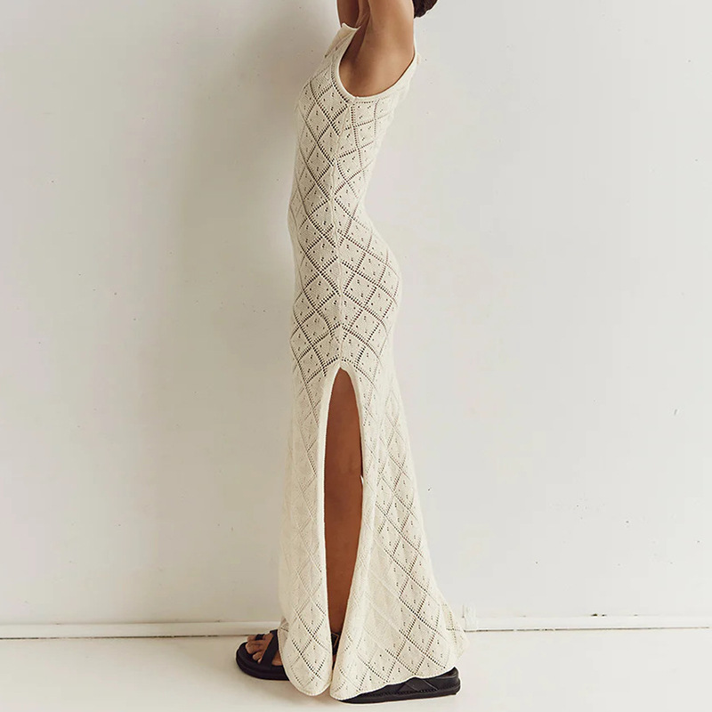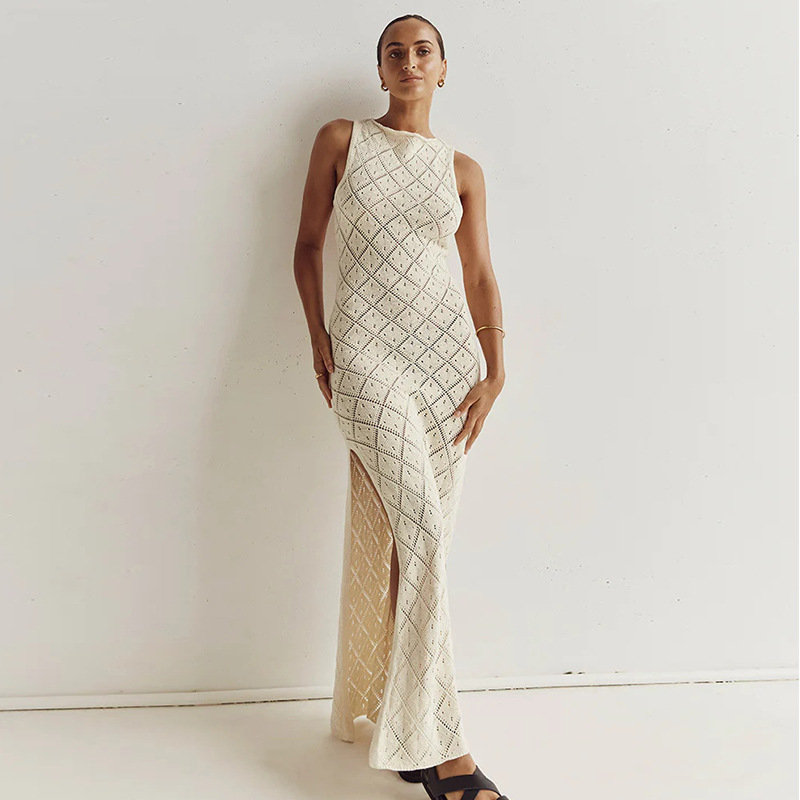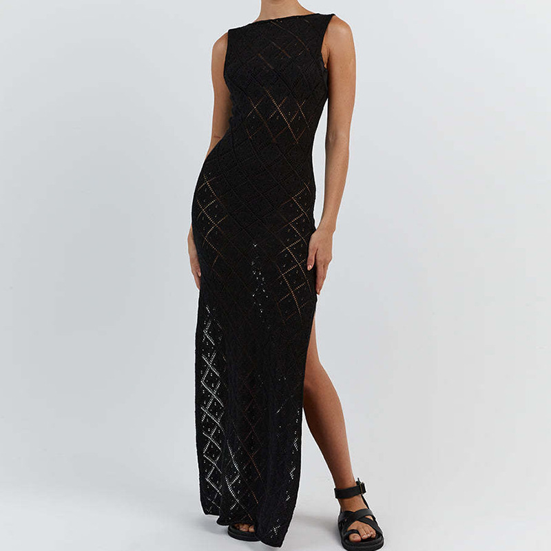 Vacation Slim Fit See through Sexy round Neck Strap Side Slit Beach Vacation Sun Shield Hanfu Long Robe Crochet hook
